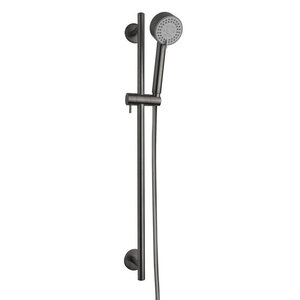 Deze design glijstangset is een echte beauty! Deze gunmetal glijstangset is de eyecatcher van uw badkamer! In combinatie met andere gunmetal elementen in uw badkamer creëert u een badkamer rijk aan design! De glijstangset is volledig afgewerkt in de kleur gunmetal en wordt compleet geleverd met handdouche en doucheslang van 150 cm. De handdouche heeft verschillende standen om zo comfortabel mogelijk te douchen. De handdouchehouder is verstelbaar om de handdouche op de juiste hoogte te kunnen instellen.