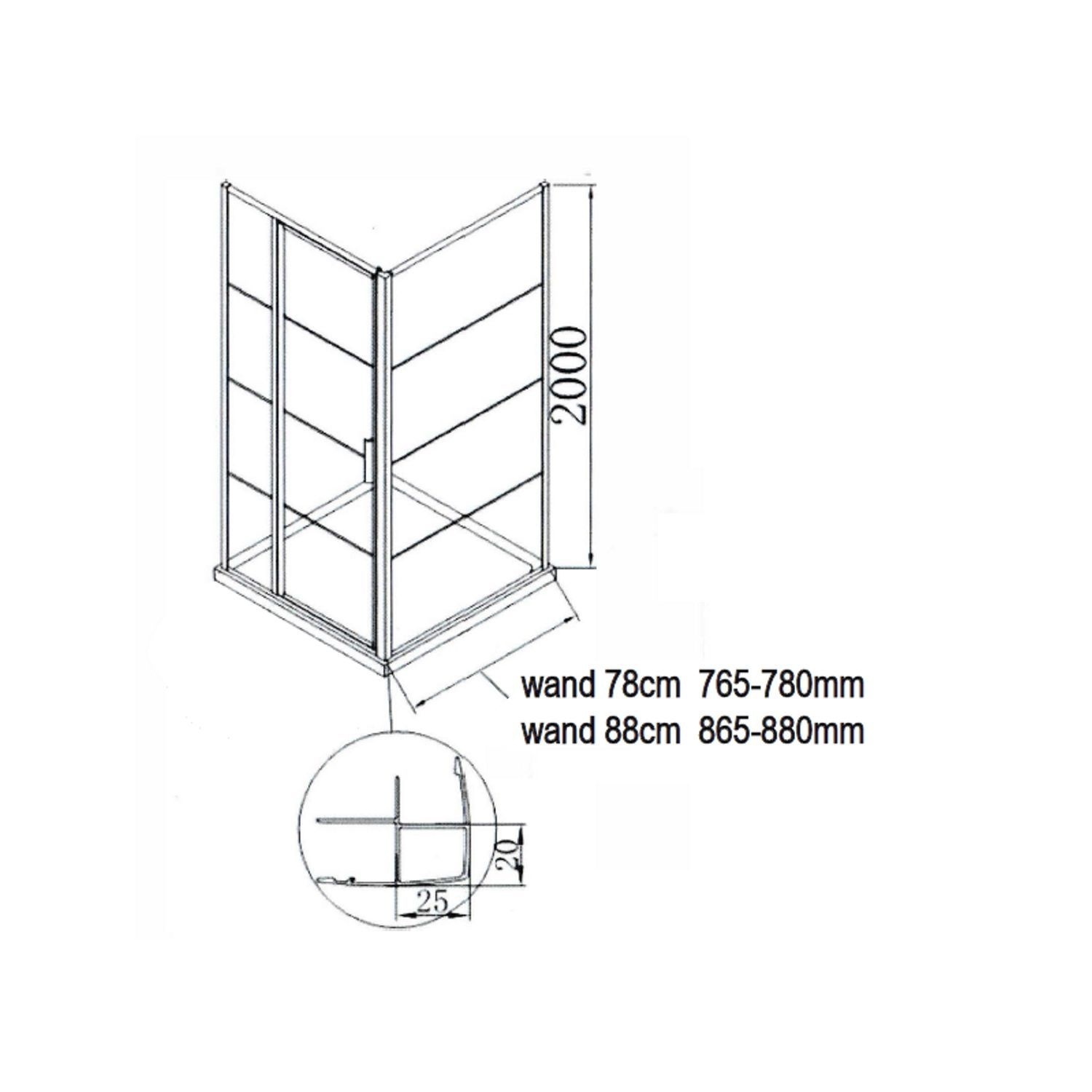 Deze prachtige inloopdouche van het merk Boss & Wessing is minimalistisch afgewerkt. Het design is uniek en voorzien van een heldere glasplaat met zwarte profielen en lijnen die aan de buitenkant op het glas zitten. De mat zwarte strepen hebben een lange levensduur en is bovendien verkrijgbaar in verschillende afmetingen. De inloopdouche kent een breedte van 78 cm en een hoogte van 200 cm. De wand is verstelbaar van 76.5 cm tot 78 cm.