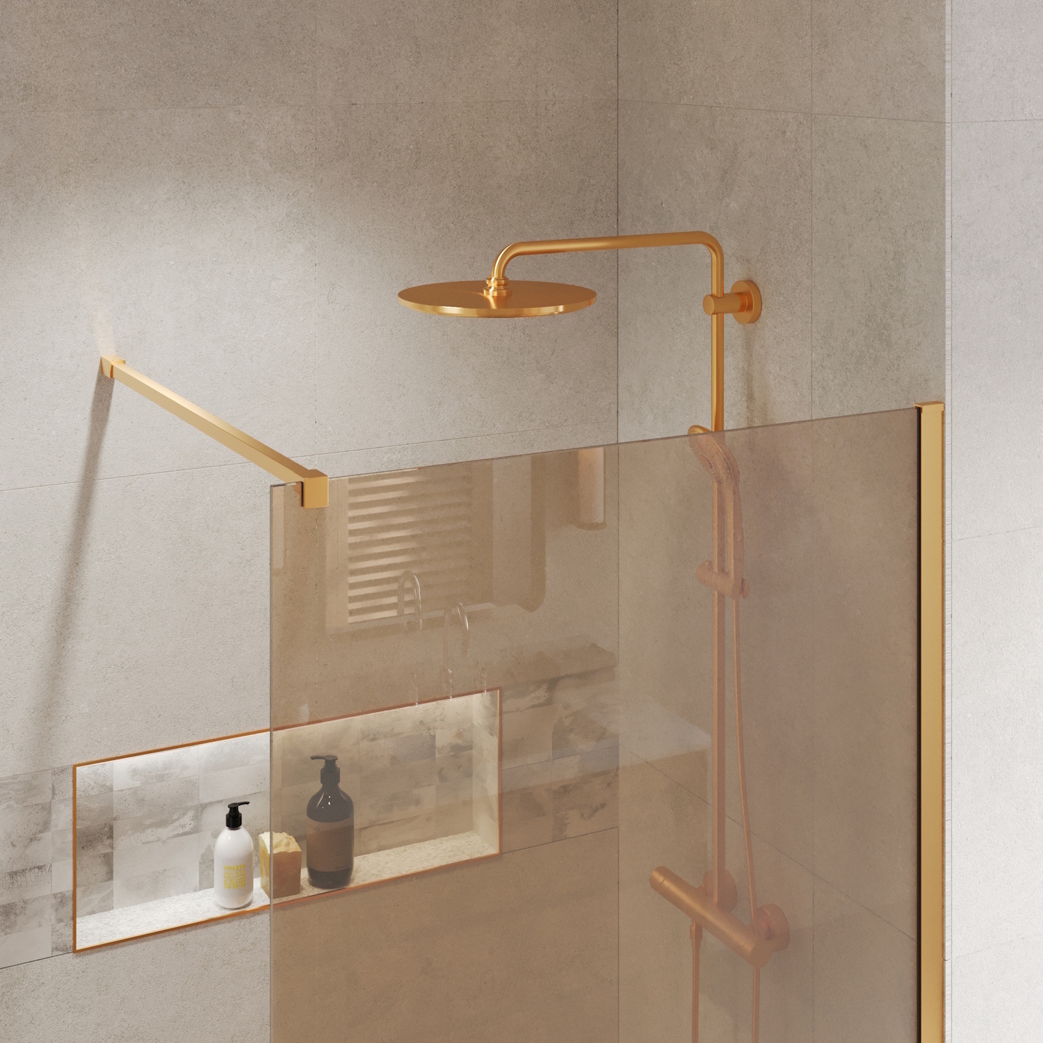 Geef uw douche een unieke look met de bronzen glasplaten van Boss & Wessing. Dit glas is behandeld met een antikalk Nano coating, dat ervoor zorgt dat vuil en kalk zich minder makkelijk hecht aan het glas. Het water loopt makkelijk van de wand en het schoonmaken zal een stuk gemakkelijker gaan. Houdt er wel rekening mee dat er geen bijtende schoonmaakmiddelen gebruikt mogen worden.