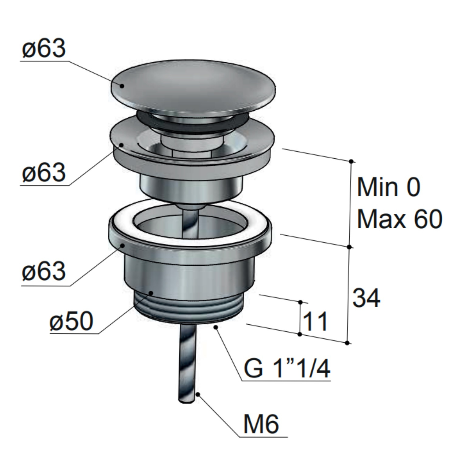 Met de Hotbath clickwaste van de serie Cobber kan u een toiletruimte of badkamer compleet maken. Door de click plugkan u de wasbak of fontein makkelijk afsluiten of openen. Door de ronde afwerking geeft dit een elegante afwerking aan uw wasbak of fontein. Iets wat ook terug te vinden is in dit product met prachtig design. De clickwaste heeft een diameter van 6,3 cm en beschikt over een M6 schroef om de plug me te monteren. De aansluiting van de plug is 1 1/4'' (5/4'').