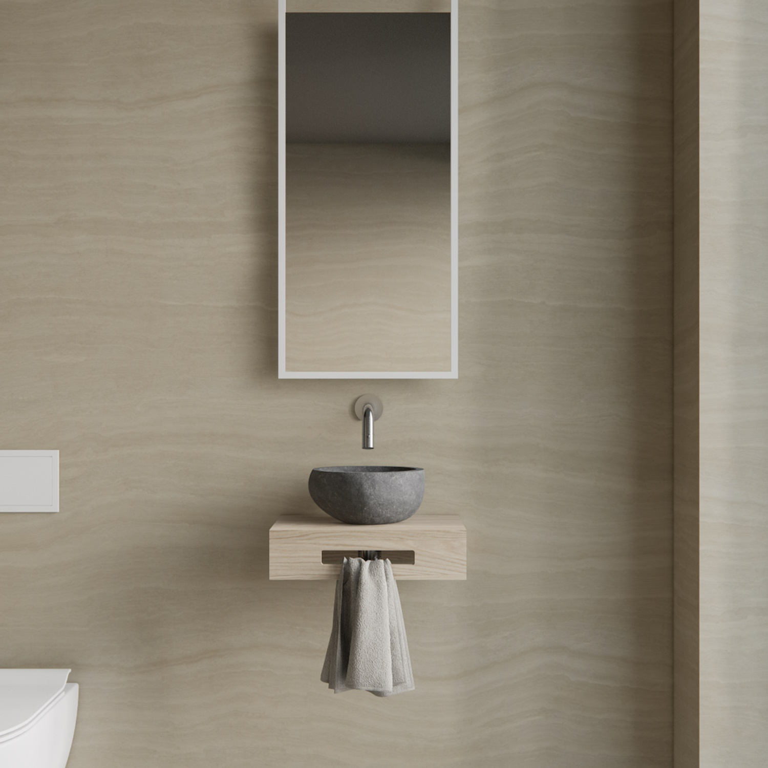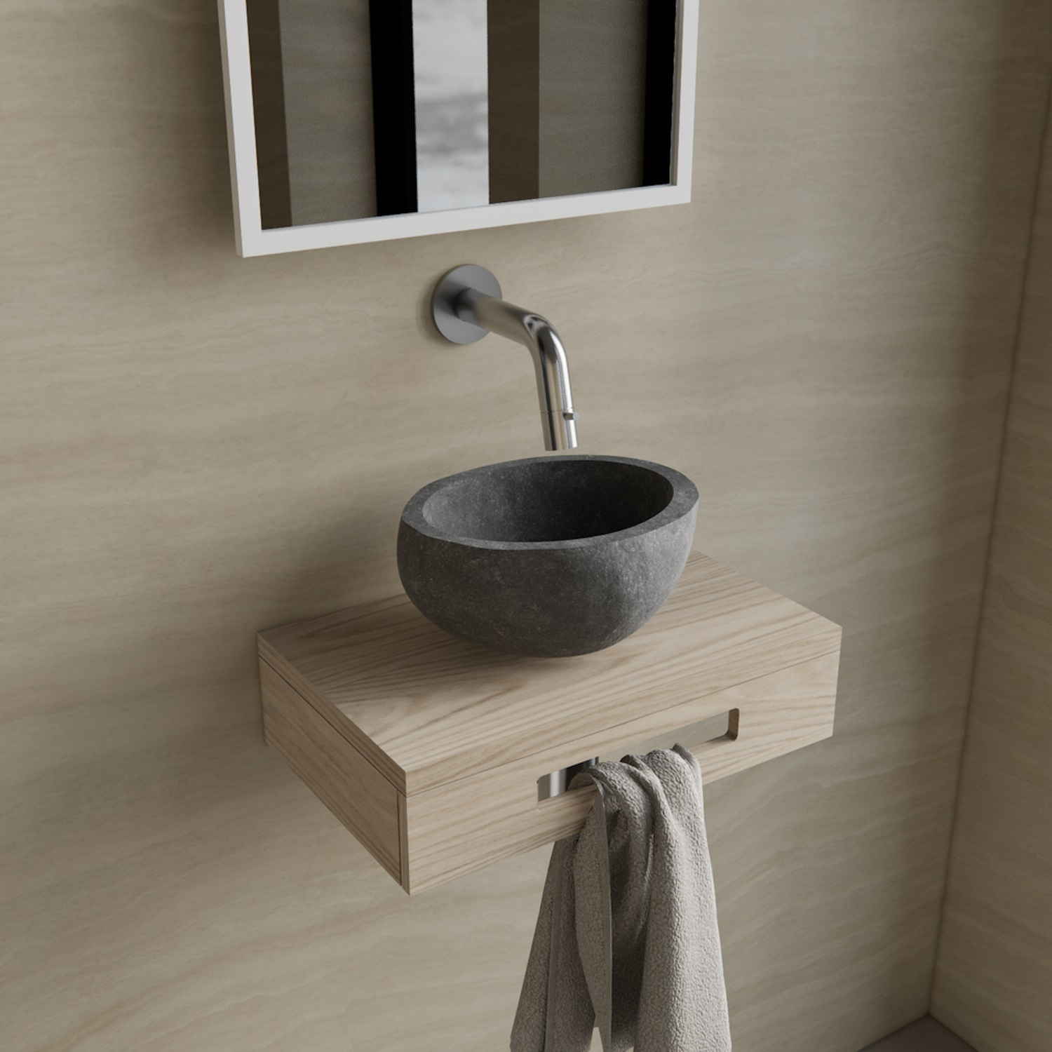 Bij deze set is in begrepen een Natuursteen Waskom, een duurzame en stijlvolle waskom in elegante grijze kleur en met een afmeting van 25 cm breed en 15 cm hoog. Een prachtige fonteinplank in een eiken kleur voorzien van een handige uitsparing aan de voorkant voor het ophangen van handdoeken. De plank is 40 cm breed en 25 cm diep. Bovendien zijn ook inbegrepen de chrome Accessoires; een chrome fonteinkraan met een aansluiting van G1/2,een bijpassende chrome plug en een chrome sifon.