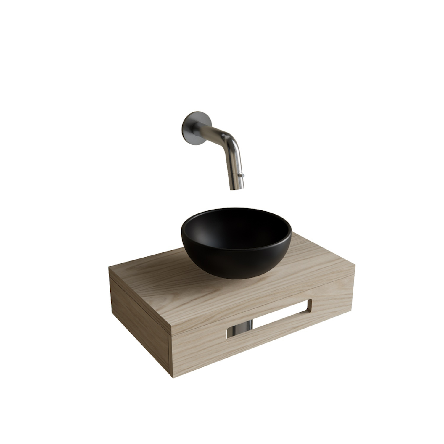 De fonteinplank wordt geleverd zonder afvoergat, zodat u zelf kunt bepalen waar u het gat voor de waskom wilt plaatsen. Maak van uw badkamer een stijlvolle en functionele ruimte met de Complete Fonteinset BWS Hold!
