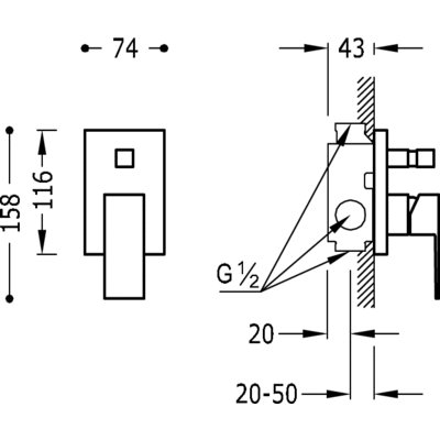 Cuadro Inbouwmengkraan (2‑wegs) inbouwkraan inbegrepen