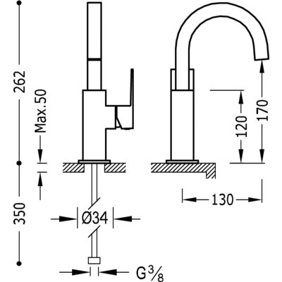 Cuadro Wastafelmengkraan uitloop 22x22 mm.