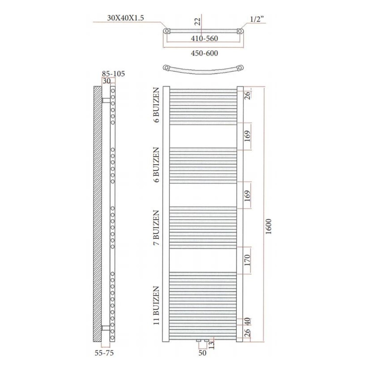 Zet de puntjes op de i, bij u in de badkamer met deze designradiator van Sanicare. Designradiatoren zijn er tegenwoordig in alle soorten en maten, daarom is het eenvoudig om een passende radiator te vinden voor in uw (nieuwe) badkamer. Naast dat het een luxe uitstraling geeft, is het ook erg praktisch. Zo kunt u bijvoorbeeld uw handdoeken opwarmen, terwijl u lekker onder de douche staat. De designradiator wordt geleverd inclusief 3 afsluiters en ontluchter voor de aansluitpunten die niet gebruikt zullen worden. De hart-op-hart afstand (HoH) bij deze designradiator is 5 cm en hij heeft een vermogen van 1056 Watt. De radiator kan op alle verschillende manieren gemonteerd worden, zowel de midden, boven en onder aansluiting.