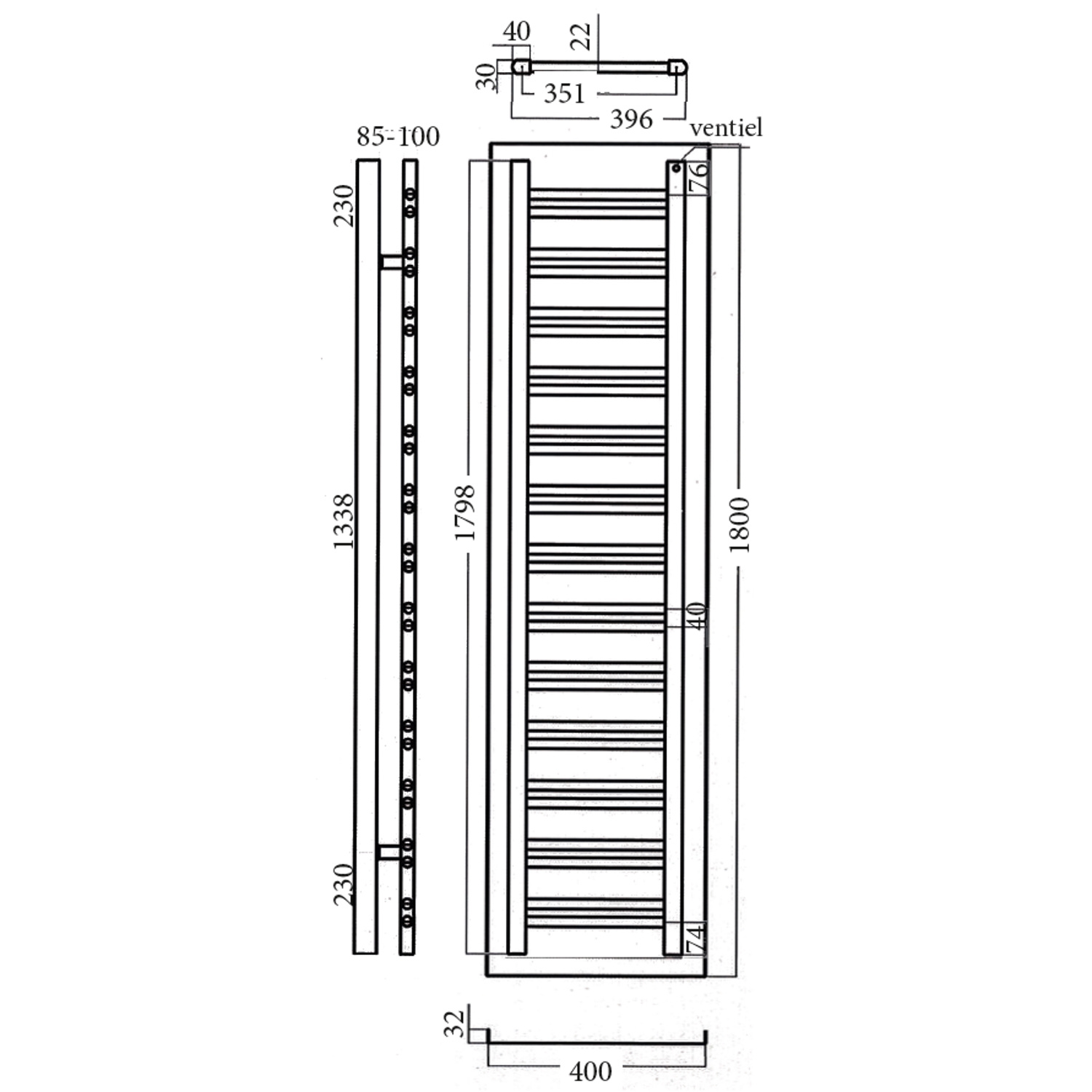 De Square neemt weinig ruimte in beslag en de ruimte ziet er gegarandeerd eleganter en harmonieuzer uit. De Square is er in de kleur mat zwart en in de afmeting 180 x 40 cm. De plaatradiator is voorzien van een geïntegreerde ontluchter en aan de onderzijde aan te sluiten. Een echte eyecatcher!