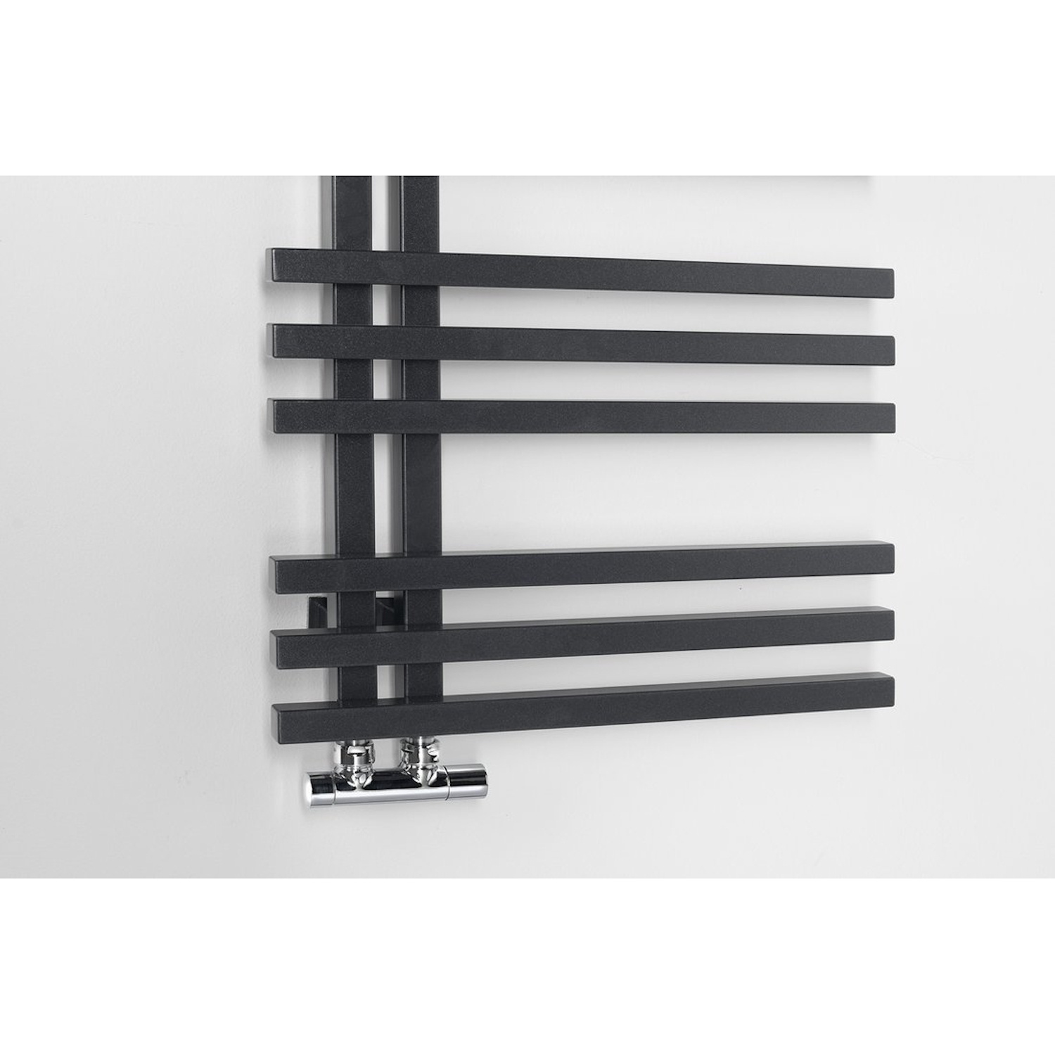 Deze mooie designradiator van serie Sophina kan door zijn eenvoudige design geplaatst worden in iedere gewenste ruimte. Met het ingetogen ontwerp is de handdoekradiator elegant en stijlvol. De breedte van deze radiator is 60 cm, de hoogte 121,5 cm en het vermogen bedraagt 771 Watt. U kunt deze radiator gebruiken bij een combinatie van centrale en elektrische verwarming, elektrische verwarming of centrale verwarming.