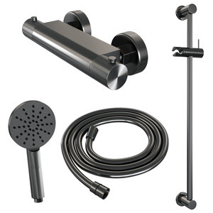 Opbouwset Bad- en Douchekraan Brauer Gunmetal Carving Thermostatisch Met Glijstang Geborsteld Gunmetal