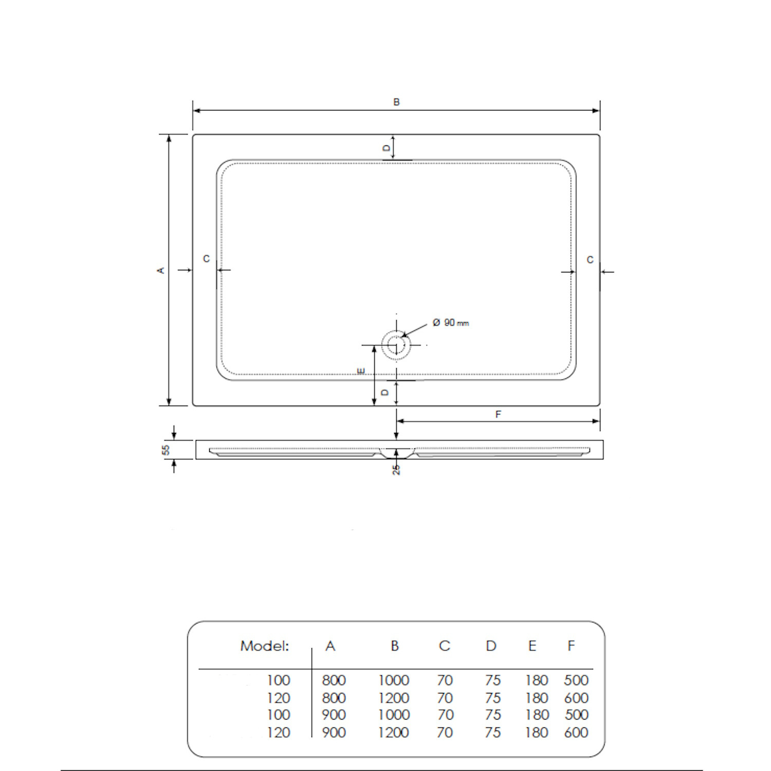 Let op! Deze douchebak bevat geen plint. Deze douchebak is zelfdragend, er zijn dus geen extra poten nodig bij montage.