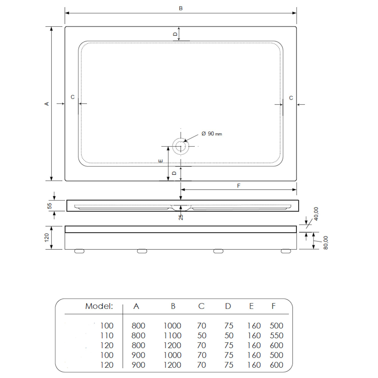 Deze douchebak is zelfdragend, er zijn dus geen extra poten nodig bij montage.