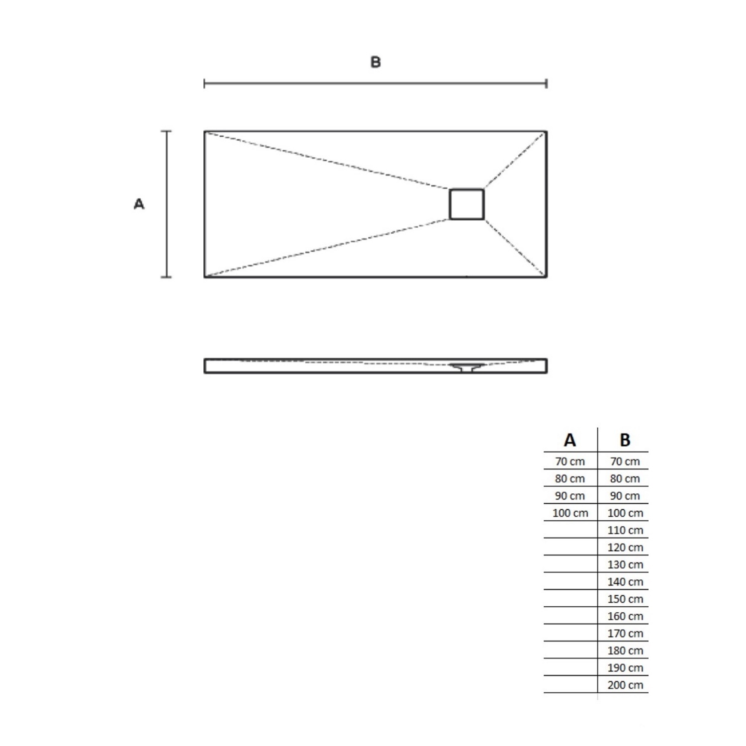 Deze douchebakken zijn leverbaar in diverse breedte- en lengtematen. De douchebak is beschikbaar in vier verschillende breedtes van 70 t/m 100 cm, terwijl de bak leverbaar is in liefst veertien verschillende lengtes van 70 t/m 200 cm: zodoende kunt u qua afmetingen met deze douchebak diverse kanten op en is er voor ieder wat wils. De diameter van het afvoergat bedraagt 90 mm, terwijl de douchebak een standaard hoogte van 2,8 cm heeft.