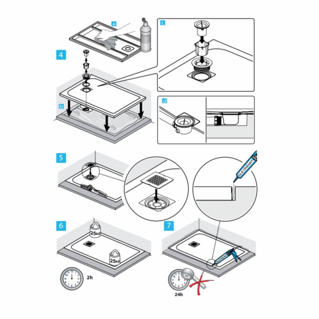 Let op! Rondom de afvoer kan een gebied ter grootte van 40x40 cm niet ingekort worden.