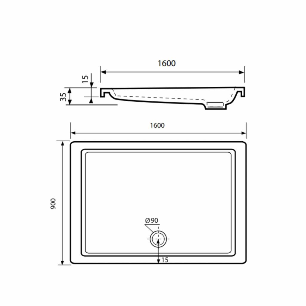 De vierkante douchebak is voorzien van een afvoergat met een diameter van 90mm aan de zijkant van de douchebak. Er wordt geen afvoer meegeleverd en ook de universele potenset zult u moeten bestellen.