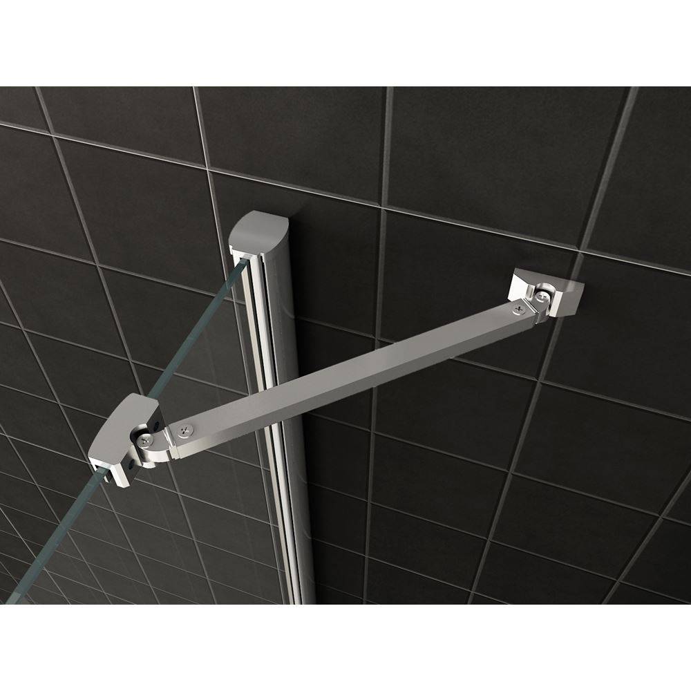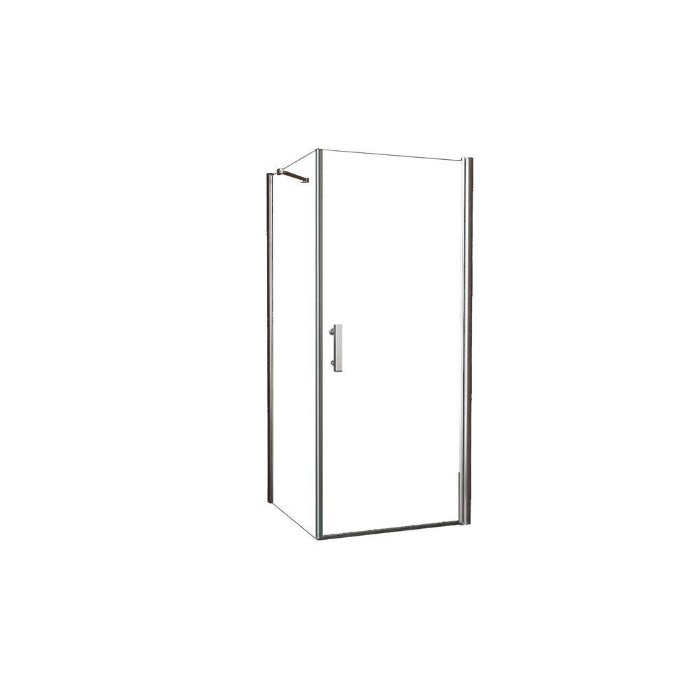 Zeer fraaie swingdeur met zijwand. De deur is 90 cm breed en 200 cm hoog. De wand is 90 cm breed en 200 cm hoog inclusief 2 chromen wand profielen welke 20mm aan beide zijden verstelbaar zijn. Deze douchecabine is universeel te installeren (deur links of rechts). Het glas is 8mm dik met NANO anti-kalk behandeling. Verstelbaar van 87,5 tot 90 centimeter.