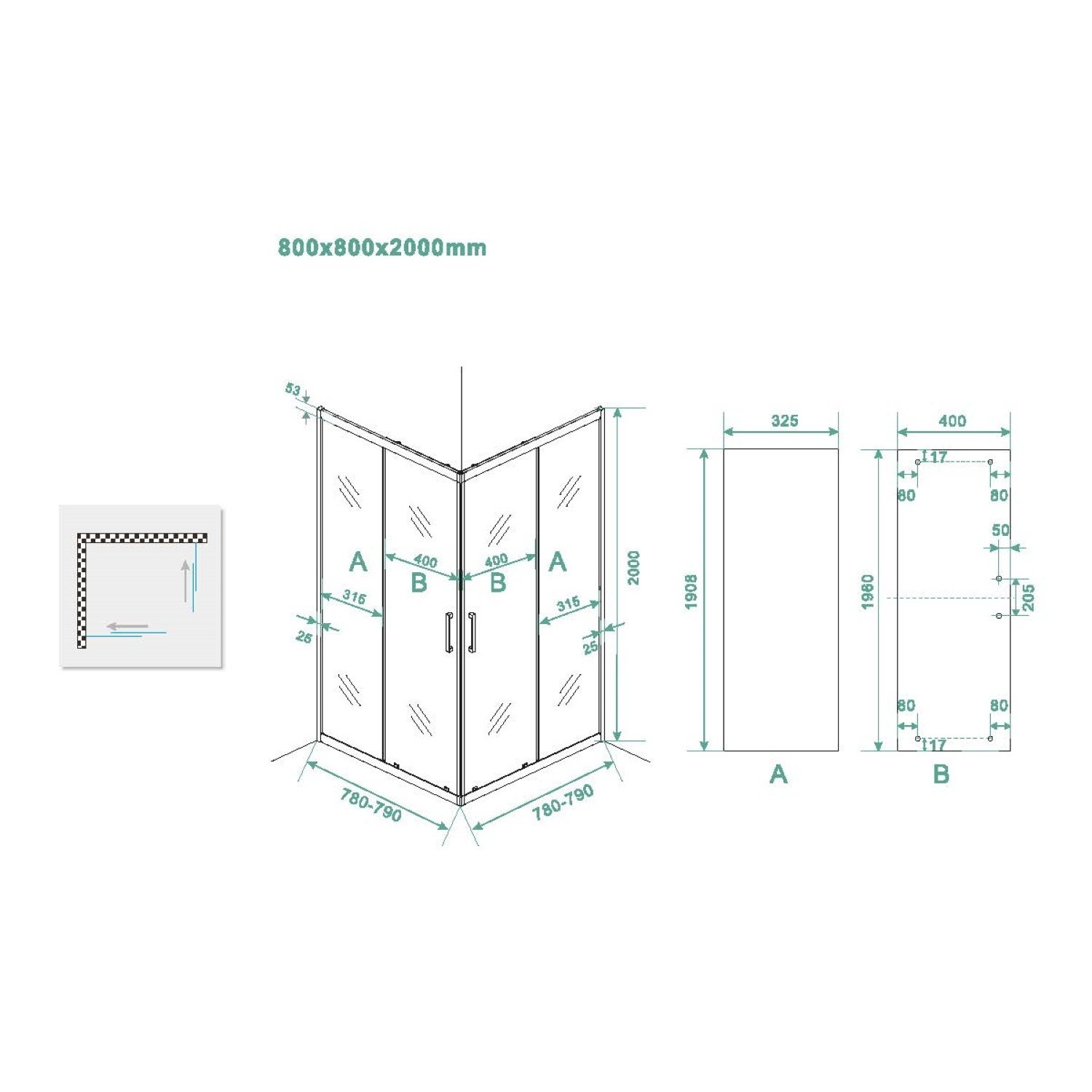 Vierkante douchecabines met schuifdeuren zijn functioneel, praktisch in onderhoud en geven uw badkamer een extra luxe uitstraling. Praktisch, omdat de hoek instap ook goed te plaatsen is in een kleinere badkamer. De douchecabine heeft een hoogte van 200 cm en de schuifdeuren hebben elk een breedte van 40 cm.
