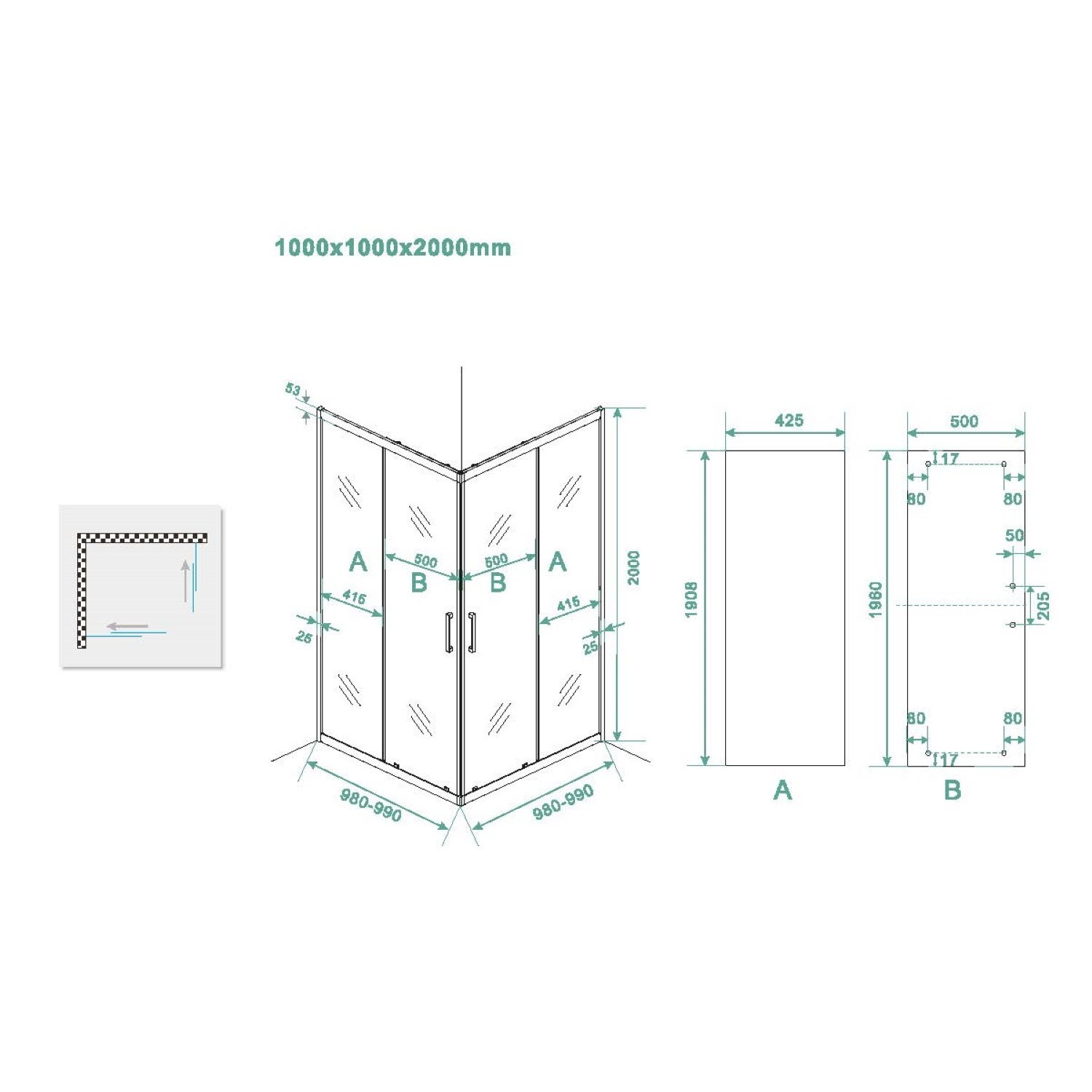 Vierkante douchecabines met schuifdeuren zijn functioneel, praktisch in onderhoud en geven uw badkamer een extra luxe uitstraling. Praktisch, omdat de hoek instap ook goed te plaatsen is in een kleinere badkamer. De douchecabine heeft een hoogte van 200 cm en de schuifdeuren hebben elk een breedte van 50 cm.