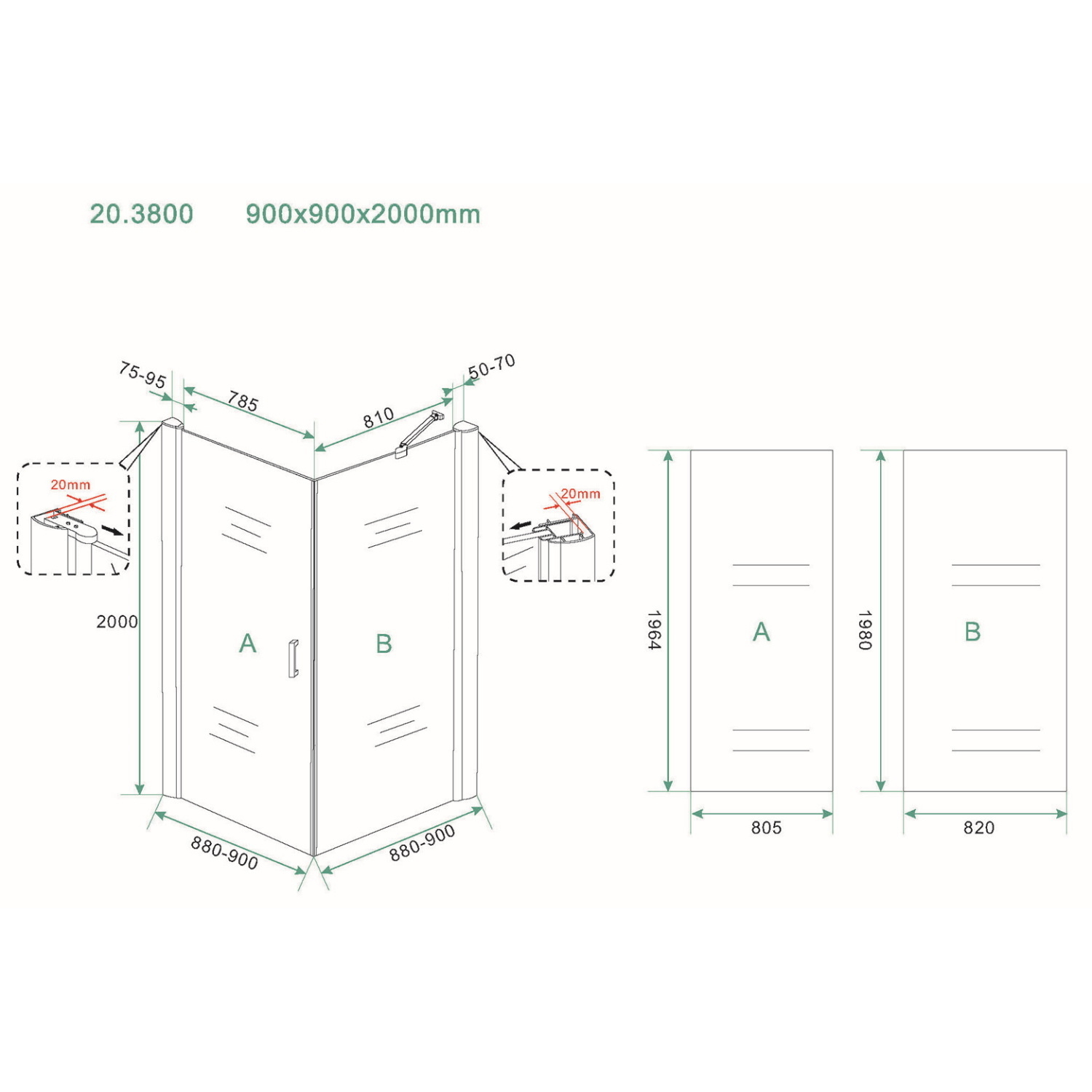 LET OP: De wandprofielen zijn aan beide zijden 2 cm verstelbaar. Verstelbaar van 88 tot 90 cm.