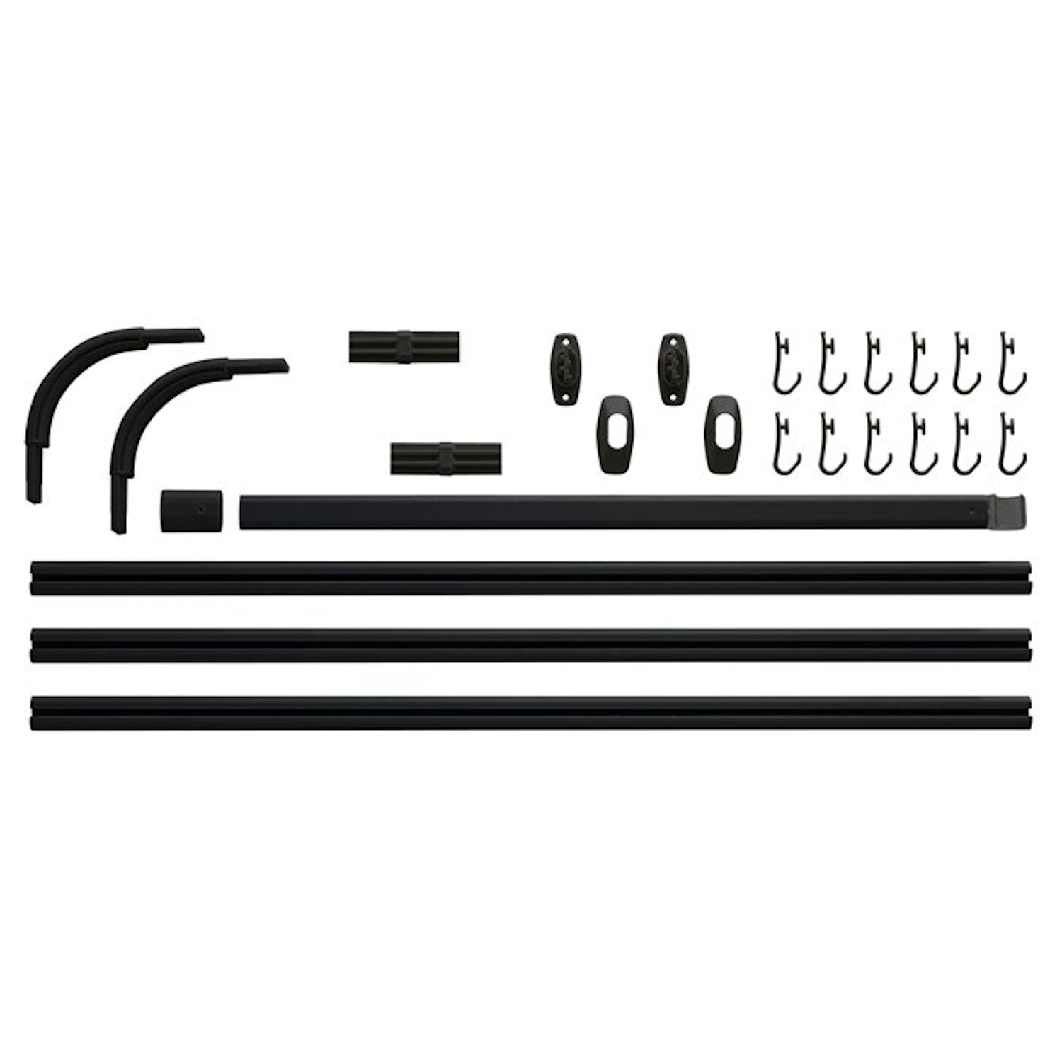 Deze set bevat 3 stangen van 90 cm, een plafondsteun van 60 cm, 2 koppelstukken en 12 gordijnhaken. De douchegordijnstangen zijn eenvoudig op maat te zagen. Het benodigde bevestigingsmateriaal en een handleiding is inbegrepen.