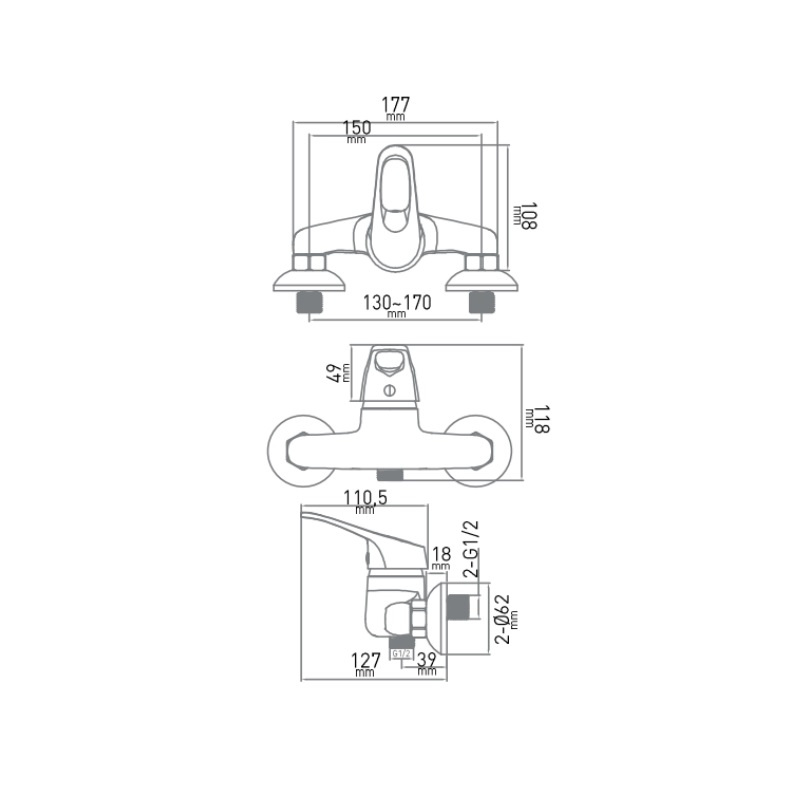 Praktisch om te weten is dat de hartafstand van de kraan 15cm is. Dat is de afstand waarmee de buizen voor warm en koud water uit de muren komen. Mocht u een oudere badkamer hebben en de douchekraan willen vervangen kan het zijn dat de oude hartafstand 12cm is. Er worden S-koppelingen meegeleverd om de afstand van 12cm naar 15cm te krijgen.