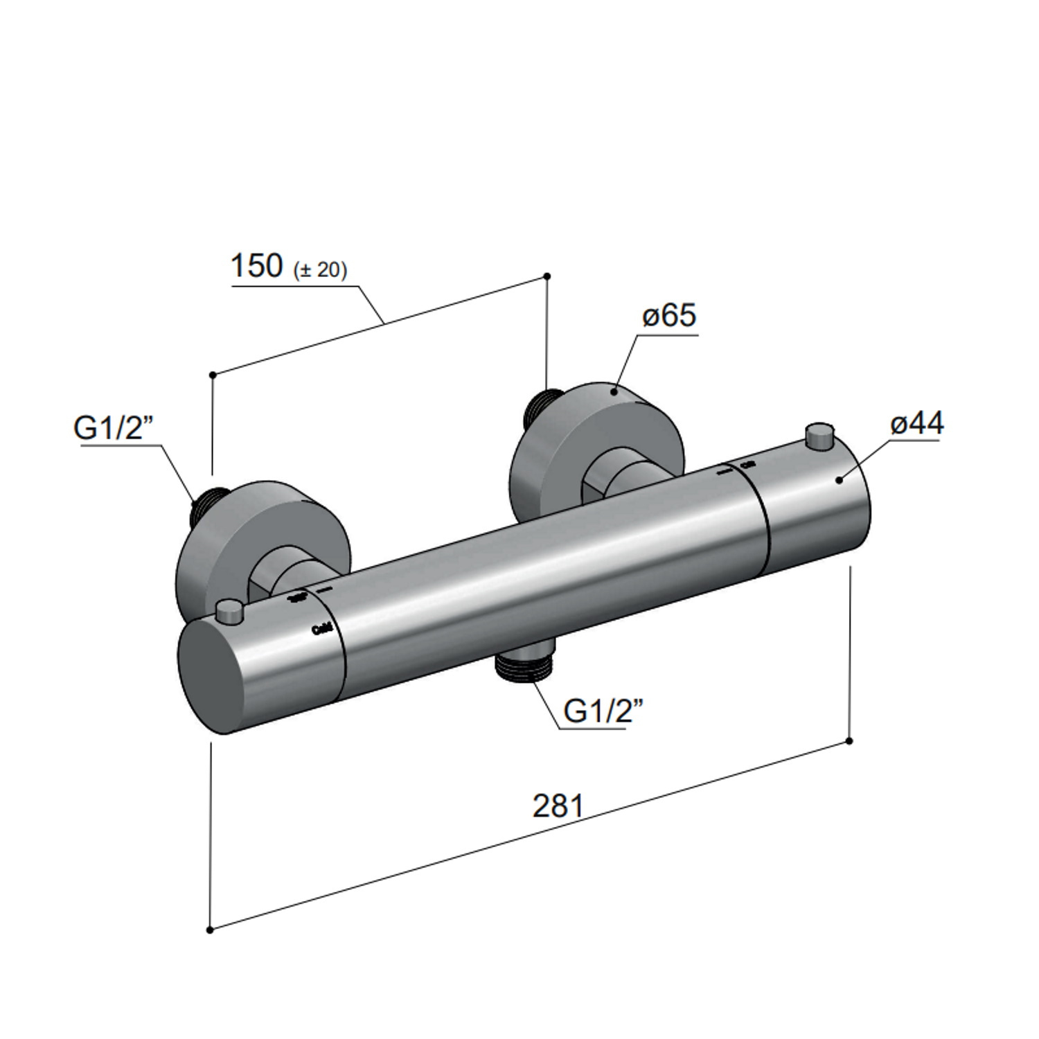 Deze mooie thermostatische douchekraan heeft een mooi strak uiterlijk. Omdat het bestaat uit één kraan met 2 draaigrepen eraan vast, oogt het rustig.