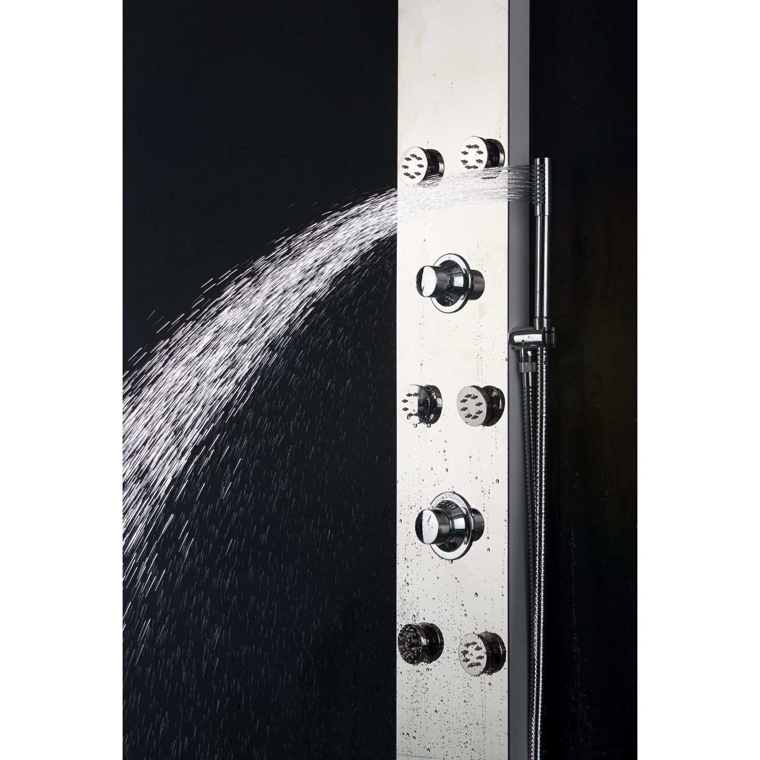 Het Ustica douchepaneel is van het merk Lacus en is een bijzonder fraaie toevoeging aan uw doucheruimte. Het douchepaneel heeft een hoogte van 140 cm, een breedte van 20 cm en een diepte van slechts 4,7 cm. De lengte van de uitloop bedraagt 49 cm. Het douchepaneel is voorzien van zes instelbare jets waar extra waterstralen uit kunnen komen: naast een fraai design artikel haalt u met dit douchepaneel dus ook extra luxe in huis! Dit bijzondere douchepaneel is gemaakt van roestvrij staal en heeft een afwerking in de kleur glanzend chroom. Verder is het paneel voorzien van een doucheslang en een handdouche.