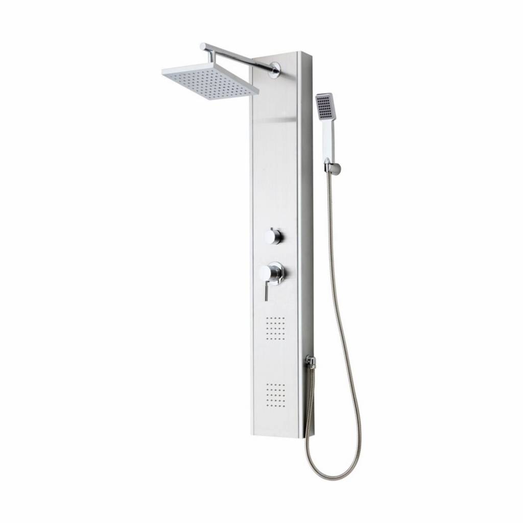 Dit douchepaneel van het merk Schütte behoort tot de Tahiti-serie. Het douchepaneel is gemaakt van roestvrij staal waardoor het uitstekend tot recht komt in vochtige ruimte. Het paneel beschikt over een douchemengkraan. Bovenin bevindt zich de vierkante stortdouche met een lengte en breedte van 19,5 cm, terwijl het paneel ook is voorzien van een kleine handdouche die u eenvoudig bevestigt op de wandhouder. Met de omstelknop is het eenvoudig te bepalen van welke douche gebruik wordt gemaakt.