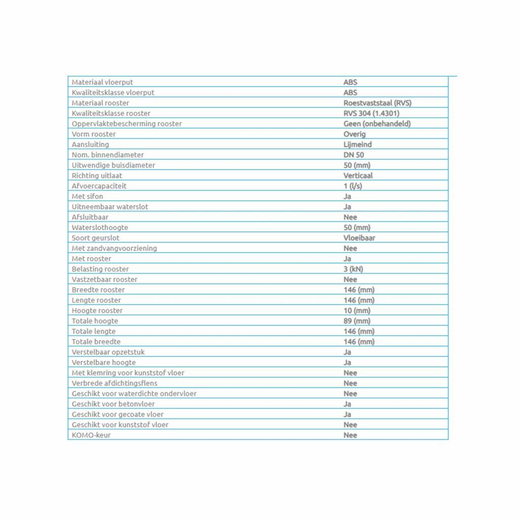 - abs kunststof put met spie-end ø 50 mm. abs kunststof opzetstuk, draaien kantelbaar, 30 mm. vertikaal en 15 mm. horizontaal verstelbaar