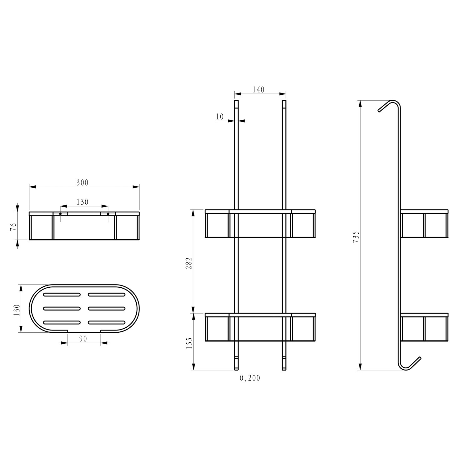 Dit Boss & Wessing doucherek is bedoeld voor ophanging aan uw inloopdouche of douchecabine. Het betreft een doucherek dat is vervaardigd uit geborsteld staal en een totale hoogte van 80 cm heeft. Het doucherek beschikt over twee ophangpunten die u over de douchewand bevestigt. Verder is dit artikel voorzien van twee draadbakjes die genoeg ruimte bieden voor het opbergen van diverse zeepaccessoires.