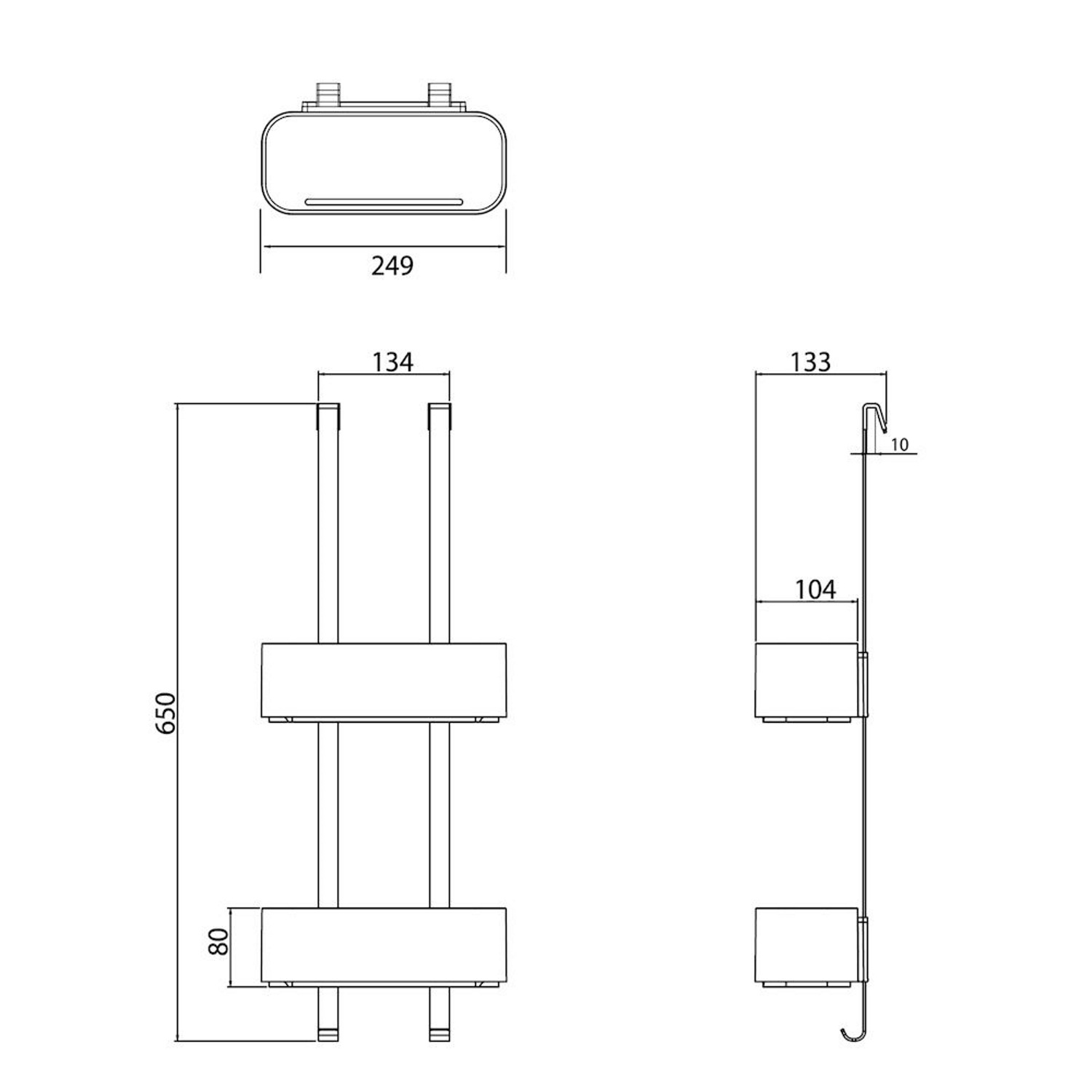 Het rek is 65 cm hoog en 13,4 cm breed. Gemaakt van kunststof en RVS.