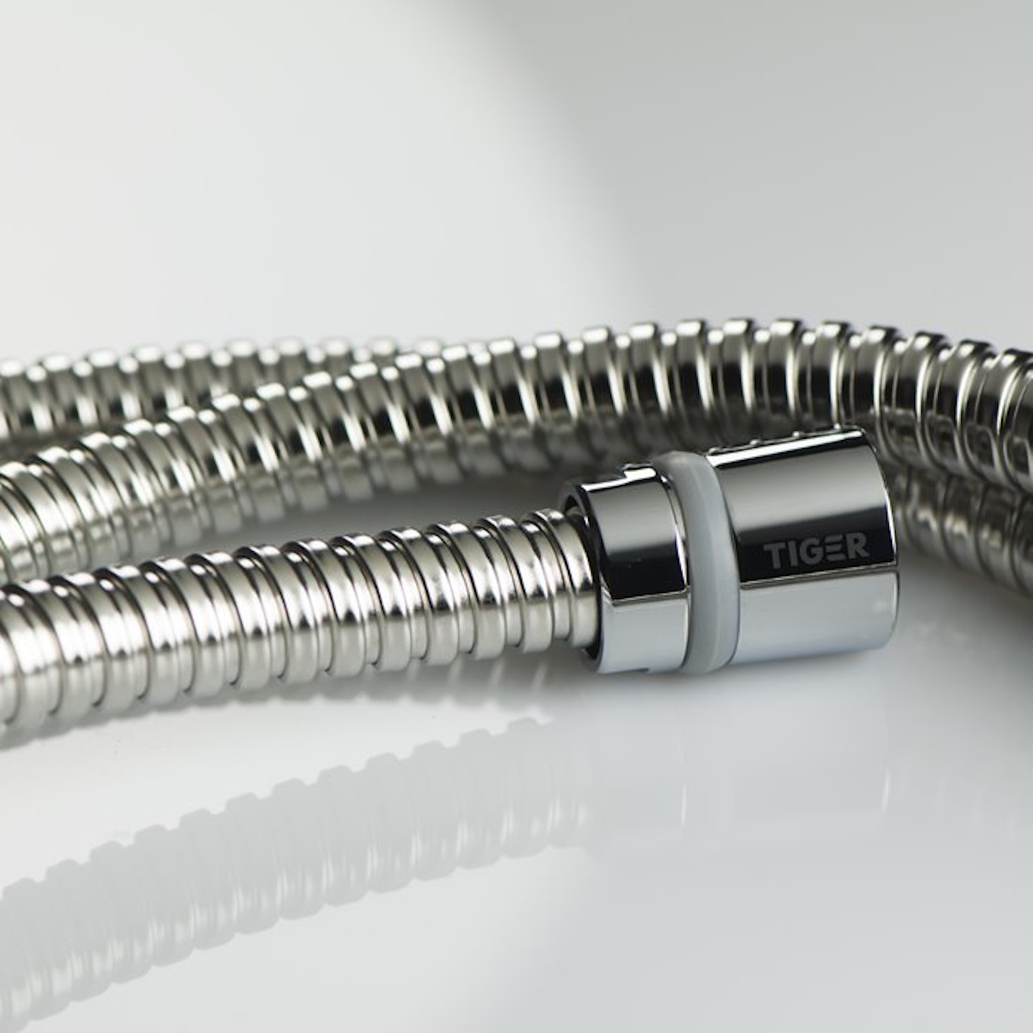De doucheslang van de Essential collectie van Tiger is precies wat u nodig heeft. De slang heeft een lengte van 150 cm en is gemaakt van roestvast staal. De geribbelde slang beweegt makkelijk met elke bocht mee. De konische aansluiting met rubberen ring zorgt ervoor dat de slang goed aangesloten blijft zitten. Een beide zijden heeft de slang een standaardaansluiting van 1/2". De doucheslang is te gebruiken tot een maximum temperatuur van 70 graden celsius.