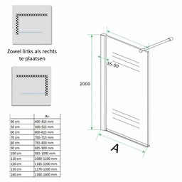 De douchecabine is voorzien 8mm dik veiligheidsglas. Omdat de douchewand geen vloerbevestiging onder het vaste deel heeft, kunt u direct na het plaatsen dit deel transparant afkitten op de vloer. Ook is het mogelijk om de douchewand op een douchebak te plaatsen.