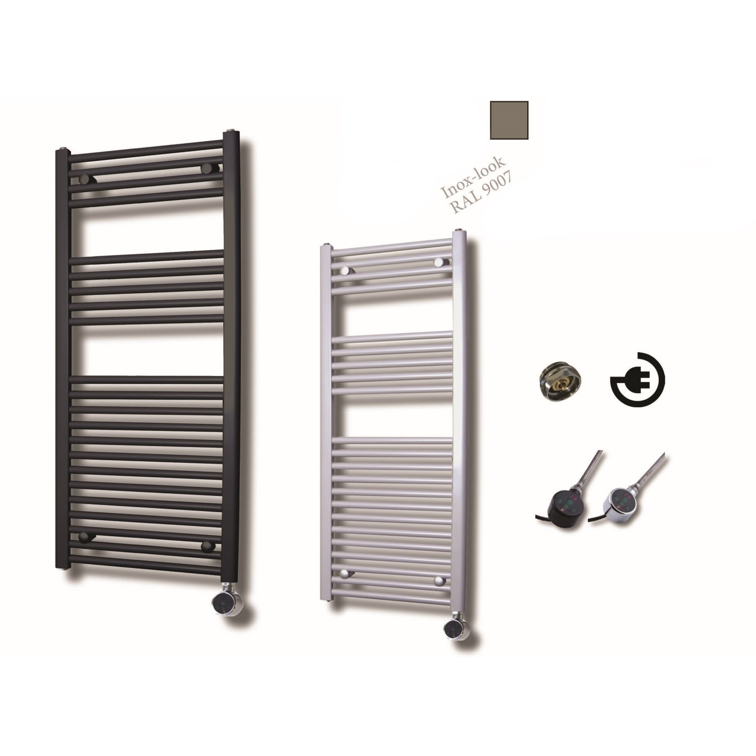 De radiator wordt geleverd inclusief ophanging, automatische ontluchter, 4 montage beugels en thermostaat. (de locatie van de thermostaat is rechtsonder, op aanvraag ook linksonder leverbaar). De afmeting van de radiator is 111,8 cm hoog, 60 cm breed en hij wordt geleverd in de kleur Inox Look met een zwart kleurige thermostaat.