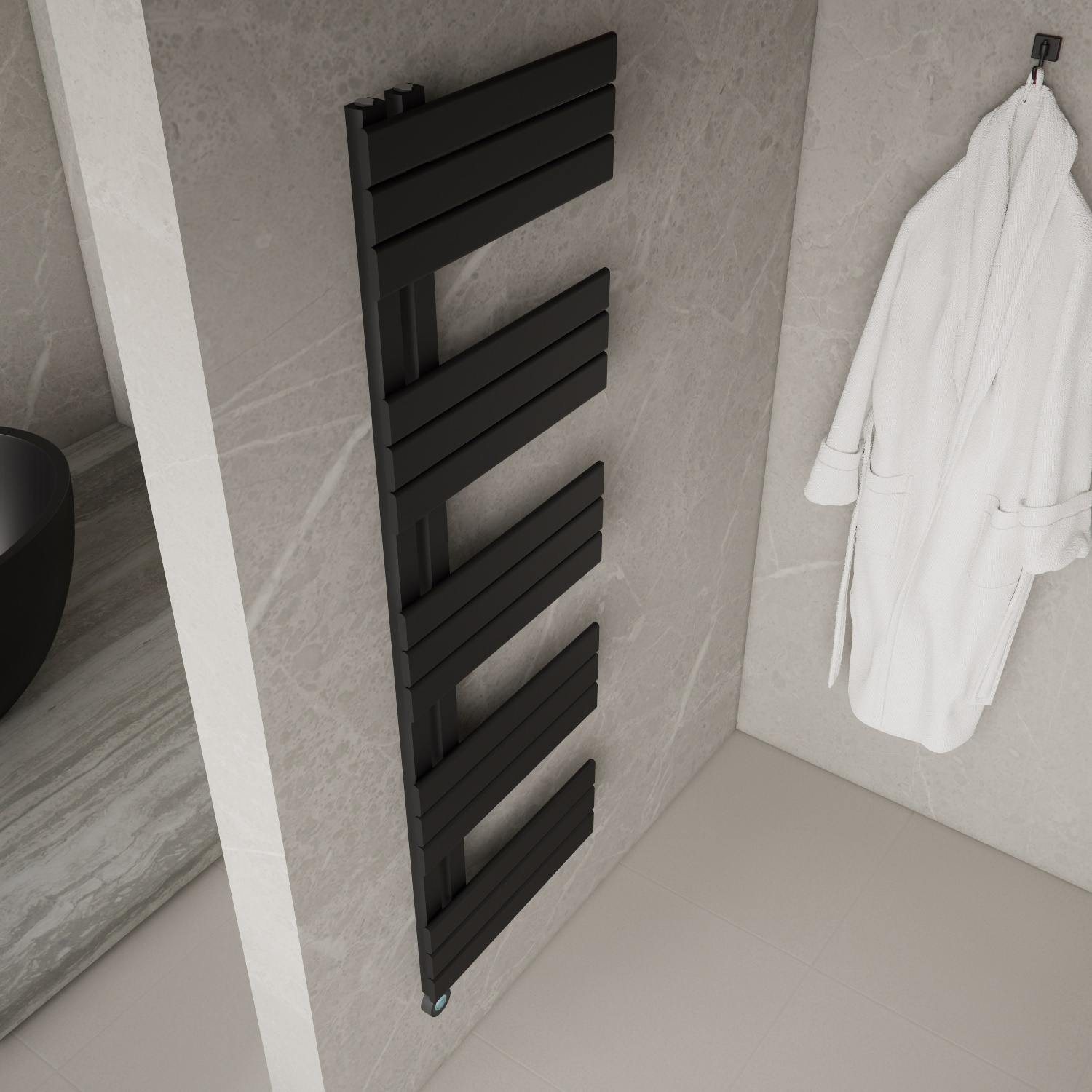 Ideaal voor in de badkamer deze Handdoekradiator, de radiator kan aan de linkerkant aangesloten worden. De radiator van Boss & Wessing uit de Russ serie past met zijn strakke design en mooie Zwarte kleur goed binnen uw badkamer. Perfect om uw handdoeken kort op te warmen en een aangename temperatuur in uw badkamer te creëren. Wat ook ontzettend handig is aan deze radiator is dat hij elektrisch is.