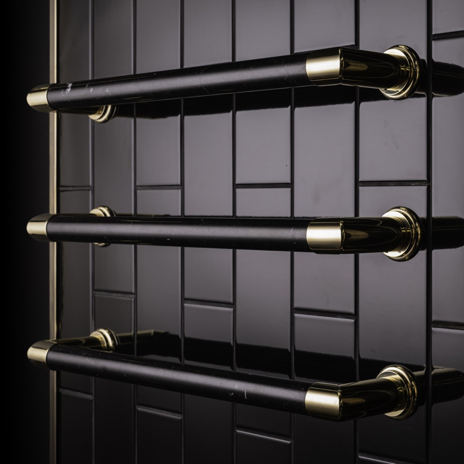 Maak kennis met ons assortiment elegante marmeren, verwarmde enkele rails. De handdoekdroger is gemaakt van marmerlook glas in combinatie met ongelakt messing roestvast staal. Door de stijlvolle vormgeving past deze handdoekdroger in elke badkamer. De rails heeft een lengte van 60 cm, een diepte van 12 cm en de buis diameter is 3.5 cm. Deze handdoekdroger is verkrijgbaar in 5 marmerlook kleuren en 16 roestvast staal kleuren. Dit zijn wel 80 verschillende combinaties waar u uit kunt kiezen.