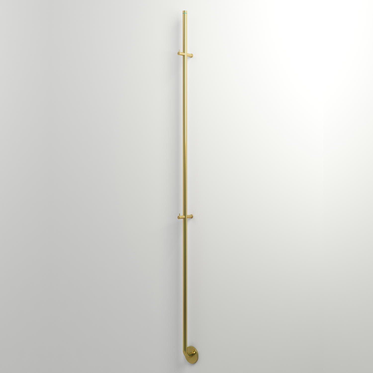 Simpel, elegant en functioneel. De handoekdroger is gemaakt van staal en is vanaf heden ook leverbaar in zwart, geborsteld messing en geborsteld brons.