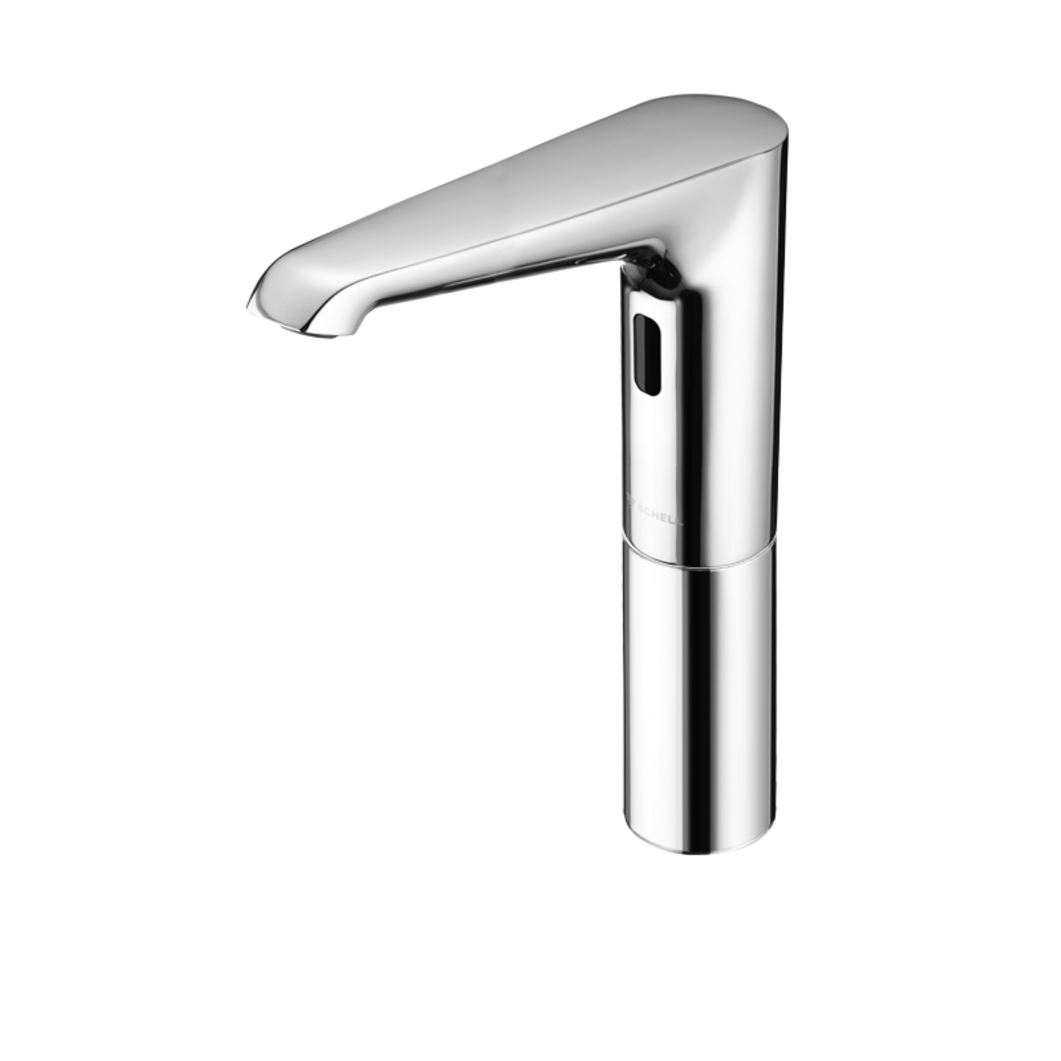 De Xeris wastafelkraan is van het merk Schell en kent een elektronische uitvoering. Met behulp van de infrarood-sensor die zich in de kraan bevindt schakelt u deze eenvoudig aan. De kraan is gemaakt van messing en is afgewerkt in een glanzend chromen kleur. De wastafelkraan is een hoog model en heeft een hoogte van 28 cm. De diameter van het kraangat bedraagt 33 mm: houd hier dus rekening mee bij het monteren van de kraan op een wastafel.