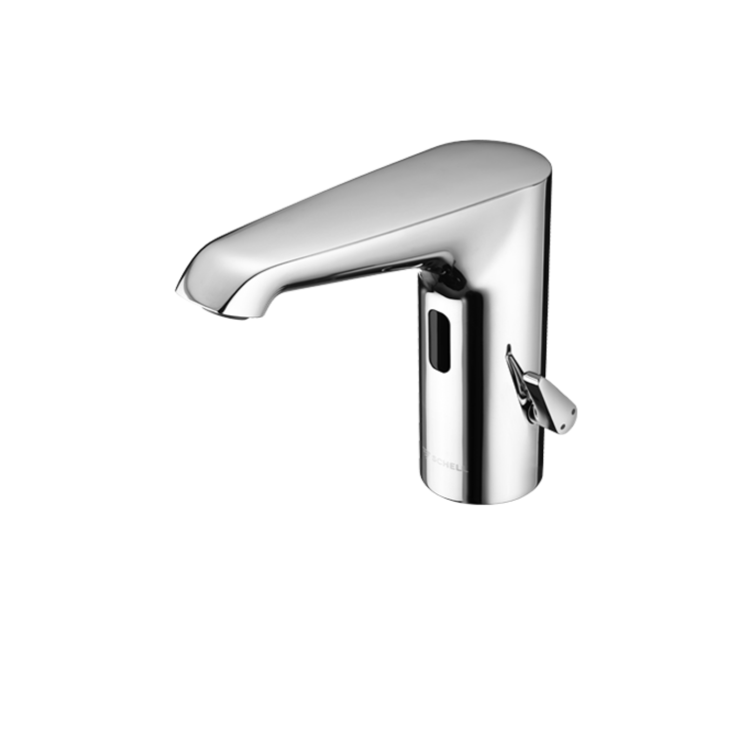 De Xeris HD-M wastafelmengkraan is van het merk Schell en kent een elektronische uitvoering. Met behulp van de infrarood-sensor die zich in de kraan bevindt schakelt u deze eenvoudig aan. De mengkraan is gemaakt van messing en is afgewerkt in een glanzend chromen kleur. De wastafelkraan is een standaard model en heeft een hoogte van 15,3 cm. De diameter van het kraangat bedraagt 33 mm: houd hier dus rekening mee bij het monteren van de kraan op een wastafel.