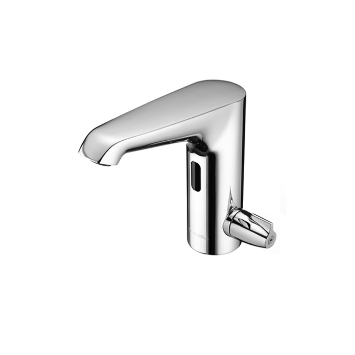 Deze Xeris wastafelmengkraan is van het merk Schell en kent een elektronische uitvoering. Met behulp van de infrarood-sensor die zich in de kraan bevindt schakelt u deze eenvoudig aan. De mengkraan is gemaakt van messing en is afgewerkt in een glanzend chromen kleur. De wastafelkraan is een standaard model en heeft een hoogte van 15,3 cm. De diameter van het kraangat bedraagt 33 mm: houd hier dus rekening mee bij het monteren van de kraan op een wastafel.