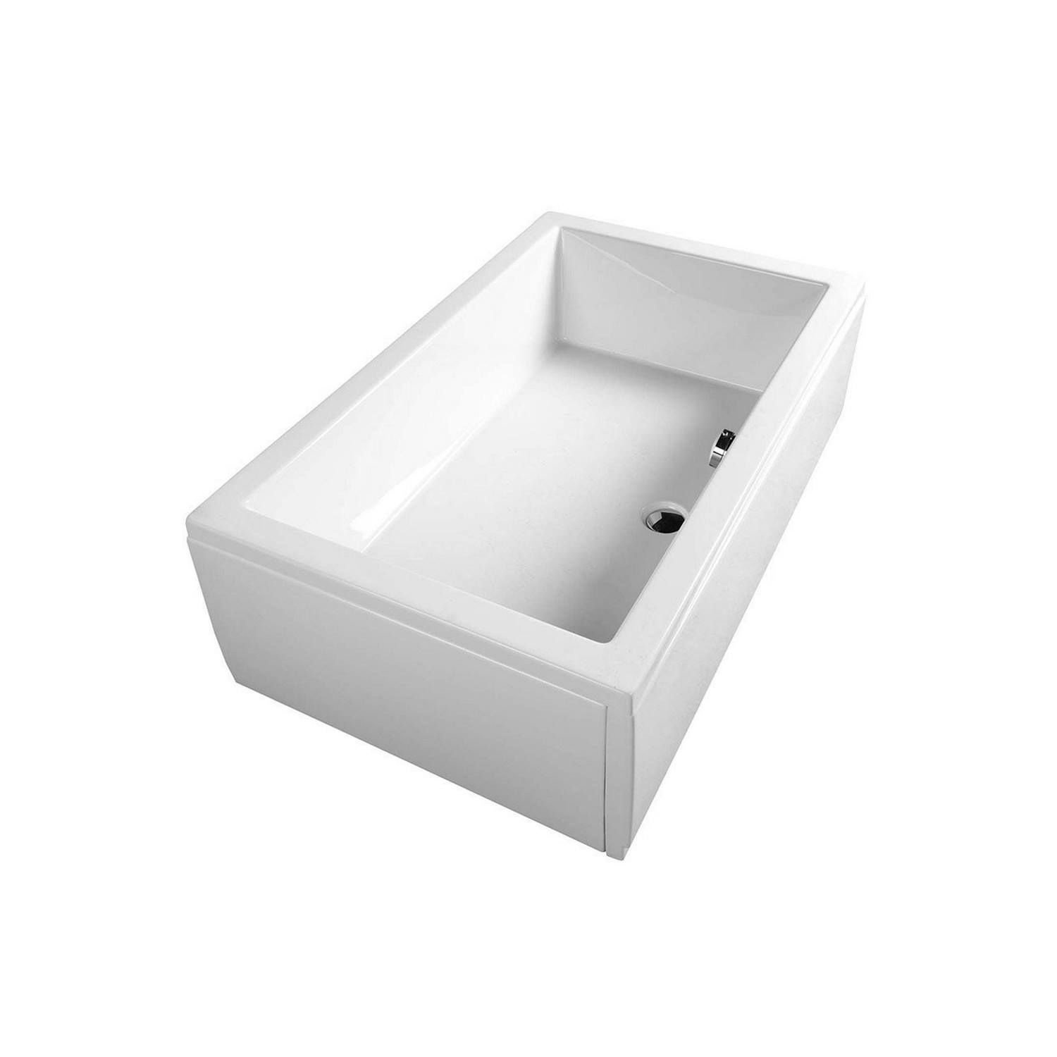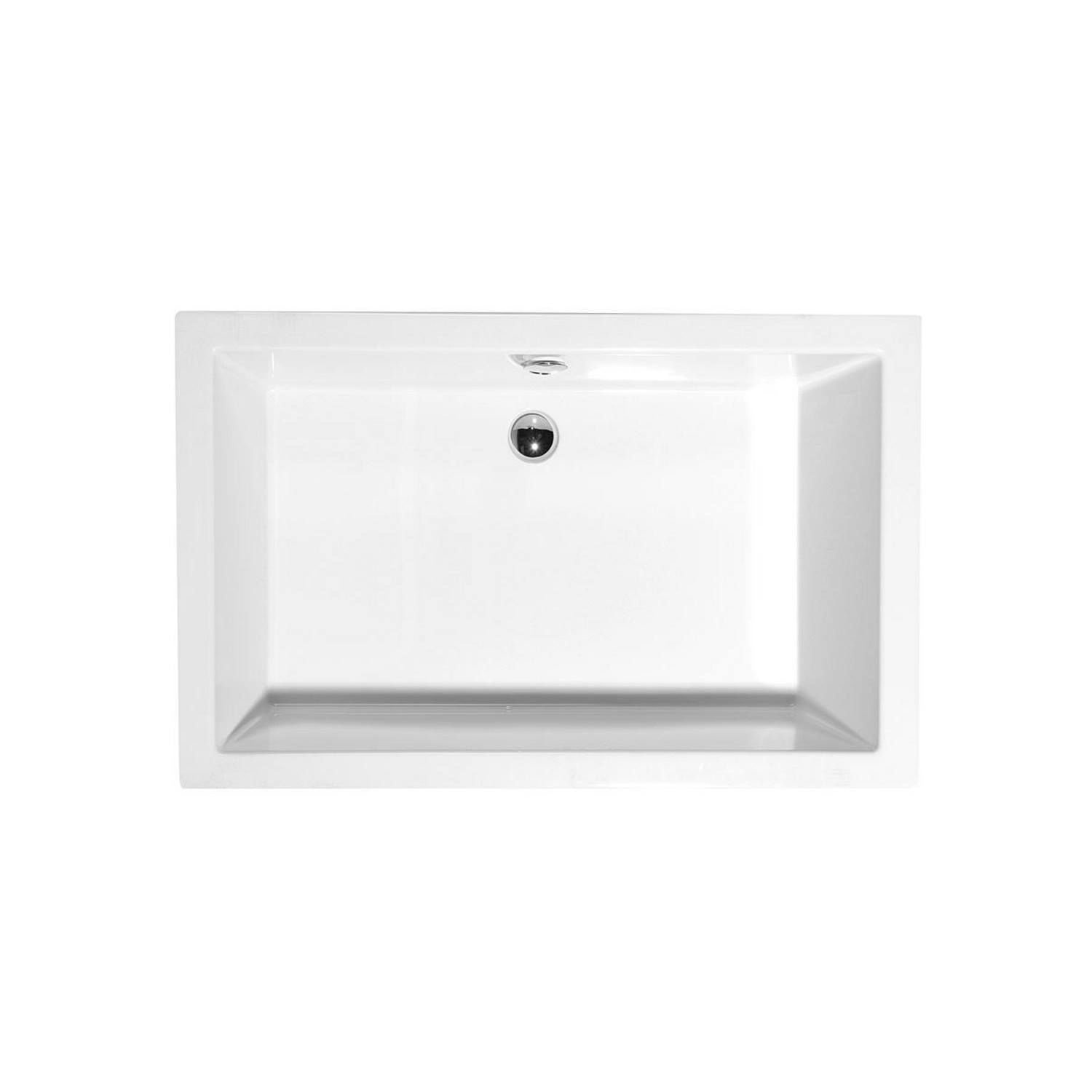 De rechthoekige douchebak is voorzien van een afvoergat met een diameter van 52 mm in het midden van de douchebak. Er wordt geen afvoer meegeleverd en ook de universele potenset zult u moeten bestellen. De voeten zijn niet inbegrepen in het pakket