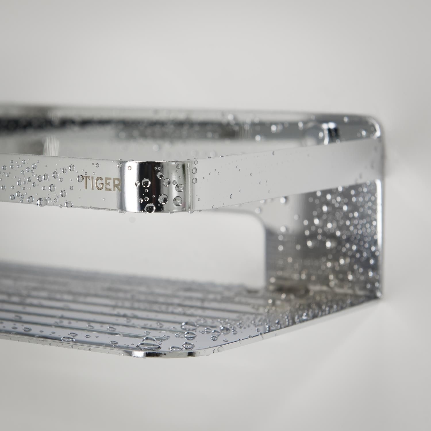 Deze flacon- en sponshouder van het merk Tiger komt uit de Caddy serie. Eenvoudig uw zeep en shampoo opbergen is nu geen probleem meer, ook heeft u ze altijd in handbereik als u onder de douche staat. Deze versie is te verkrijgen in twee uitvoeringen, namelijk deze chrome versie en de RVS geborstelde uitvoering die een matte uitstraling geeft. Deze houder is verchroomd roestvrij staal en heeft hierdoor een glanzende afwerking. U kunt deze houder eenvoudig reinigen en uiteraard is deze houder waterbestendig. Bij de flacon- en sponshouder krijgt u schroeven bijgeleverd en hiermee kunt u de houder eenvoudig in de douche monteren.
