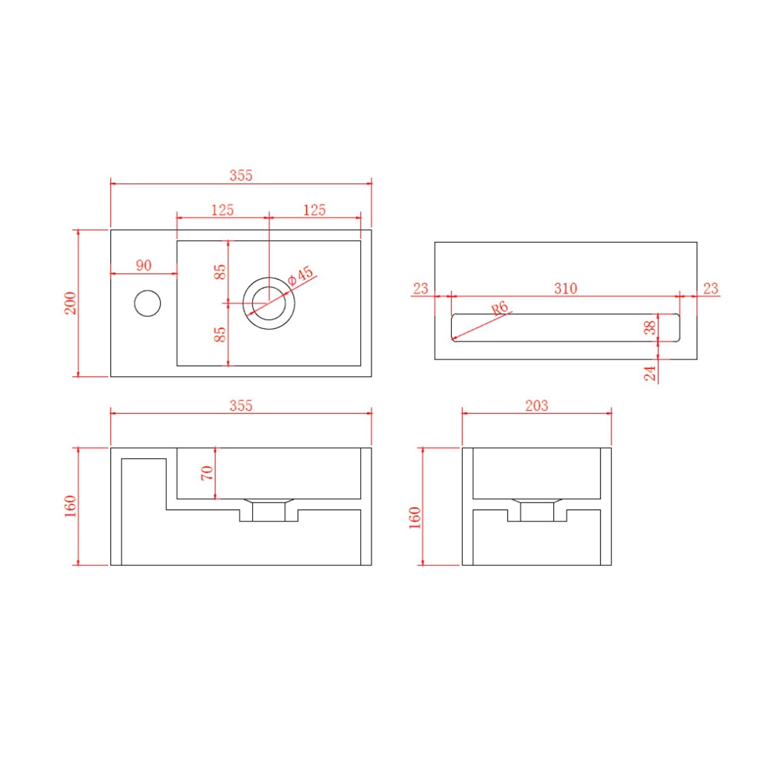 De fontein bevat geen overloop of afvoer en is voorzien van een kraangat rechts op het plateau. Hier kunt u de kraan plaatsen.