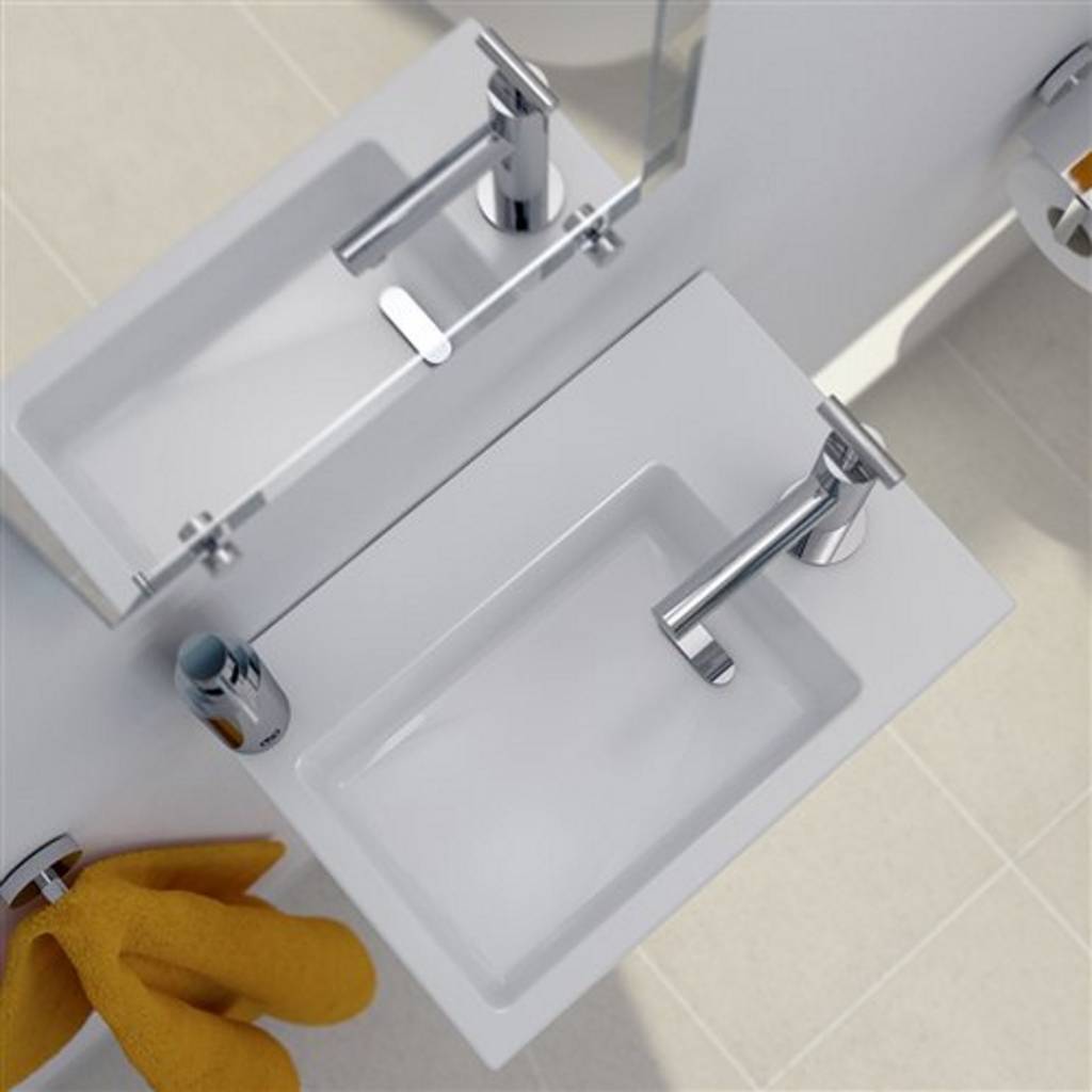 U kunt de fontein zowel hangend aan de muur plaatsen alswel als opzetfontein monteren. De fontein wordt geleverd met 1 kraangat. De fontein wordt geleverd met afvoerplug en afdekplaatje chroom. Een Plus variant voor grotere ruimtes is beschikbaar.