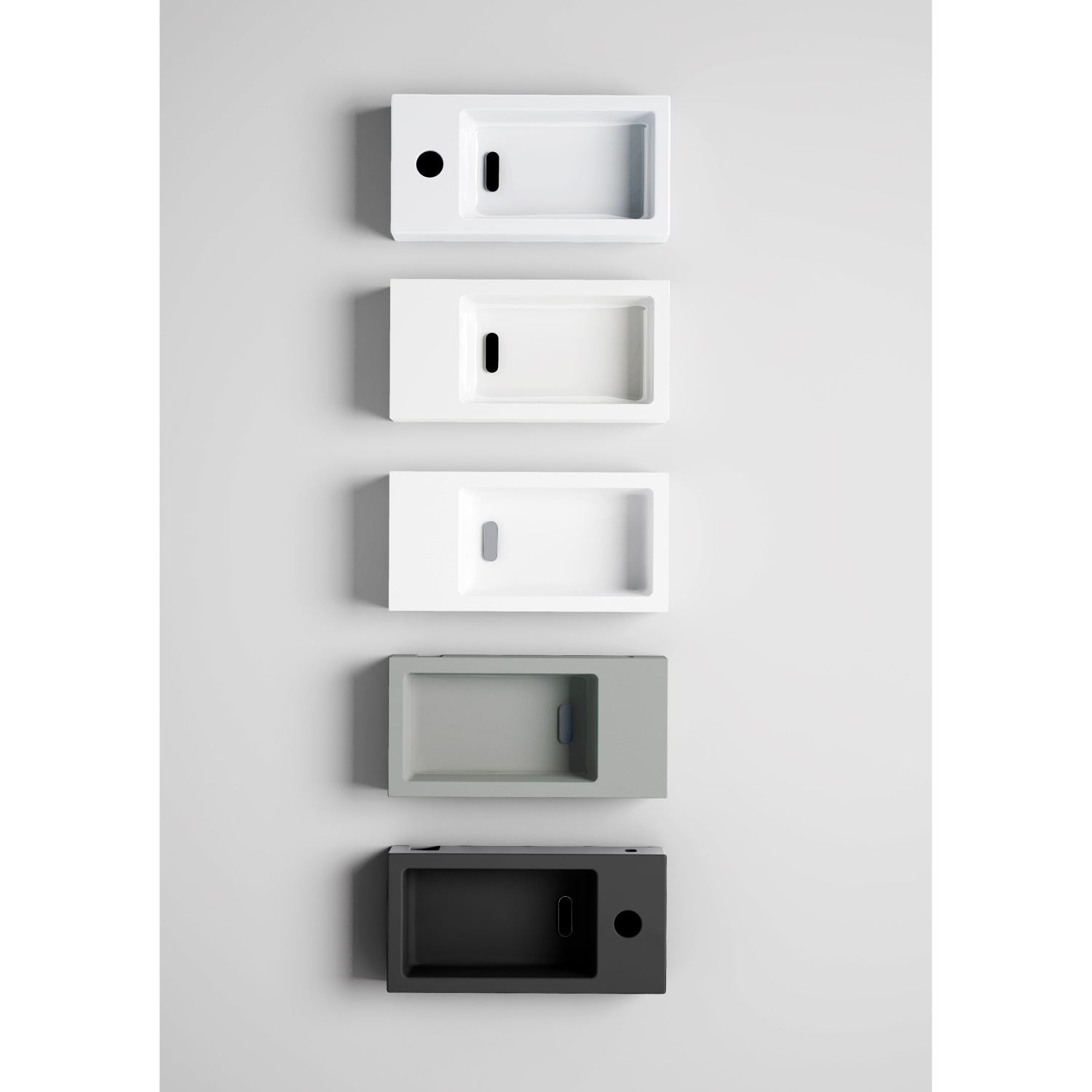 U kunt de fontein zowel hangend aan de muur plaatsen alswel als opzetfontein monteren. De fontein wordt geleverd met 1 kraangat. De fontein wordt geleverd met afvoerplug.