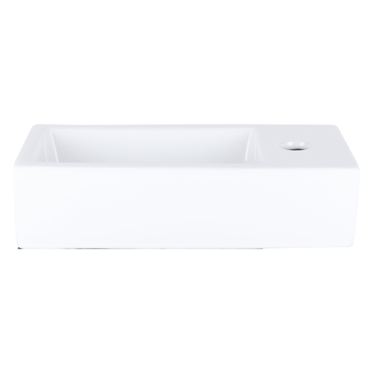 De wastafel is enkel op een manier te plaatsen namelijk recht tegen de muur met de zijkant.