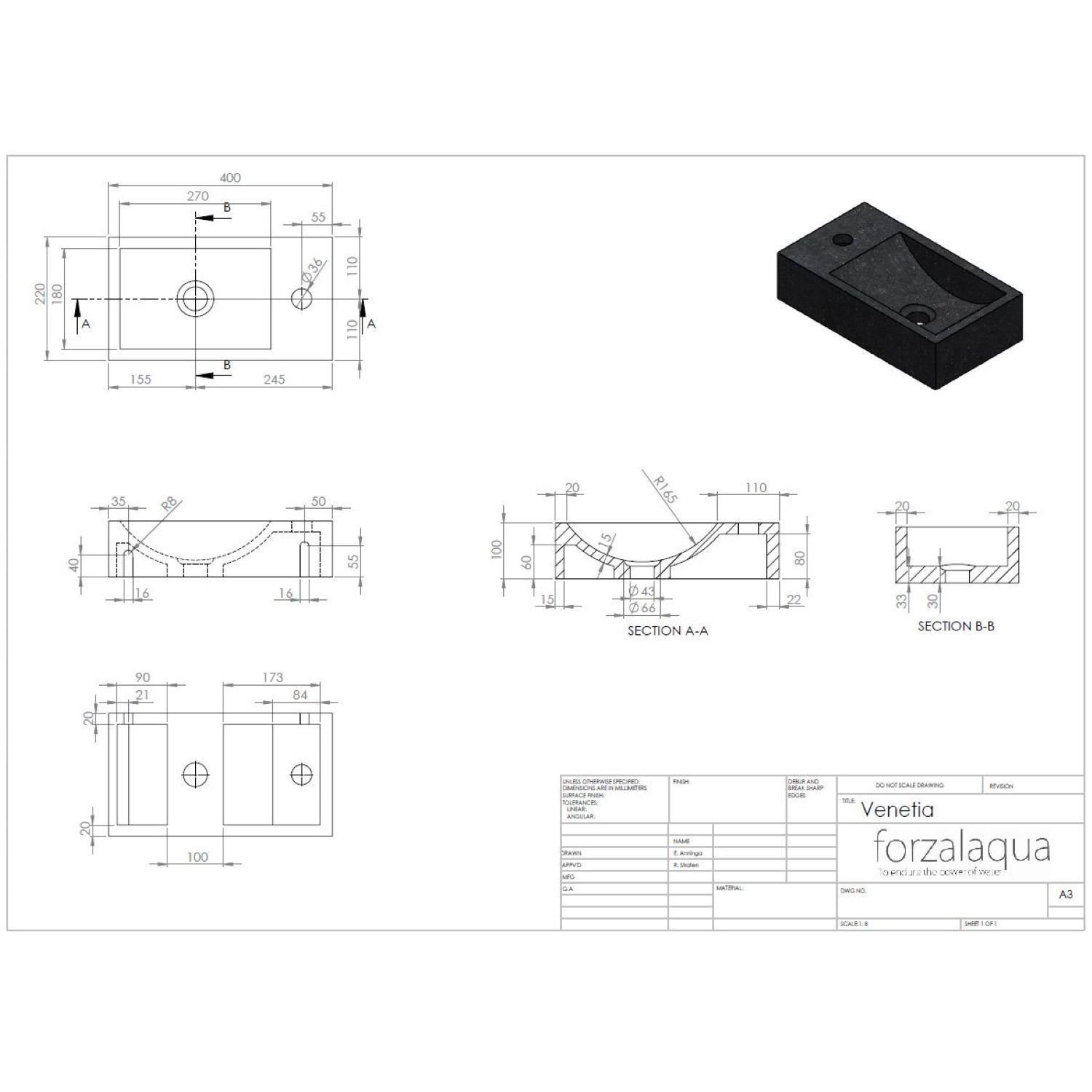 De grondstoffen voor de fontein zijn nauwkeurig gekozen en worden geproduceerd uit de oudste steengroeven uit de hele wereld. Hier komen onder andere hoge kwaliteit graniet, travertin en marmer vandaan. De blokken worden handmatig bewerkt wat resulteert in unieke producten van het merk Forzalaqua. De fonteinen zorgen ervoor dat u keer op keer kunt genieten van een uniek stukje vakwerk in uw badkamer, door de schoonheid van puur natuursteen.