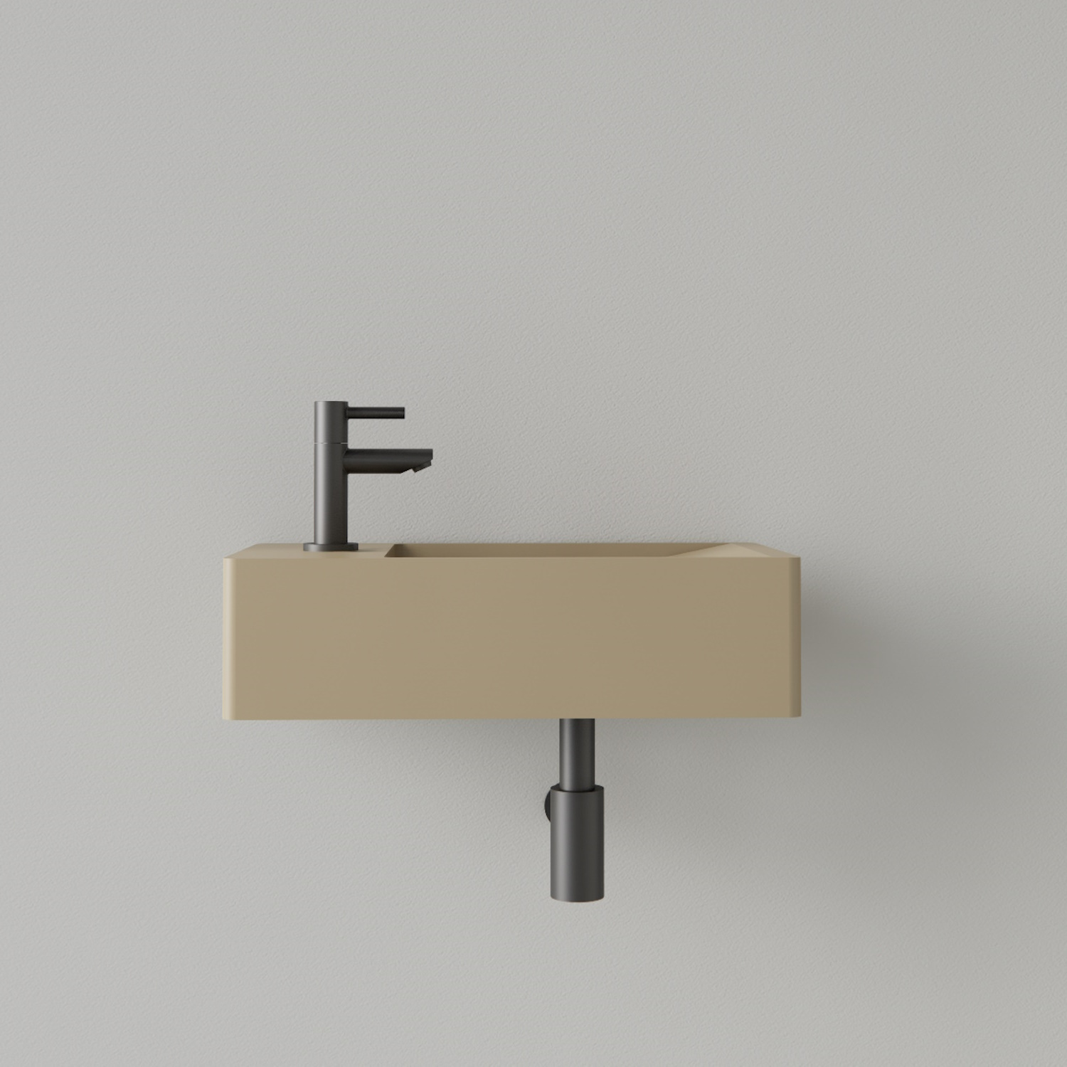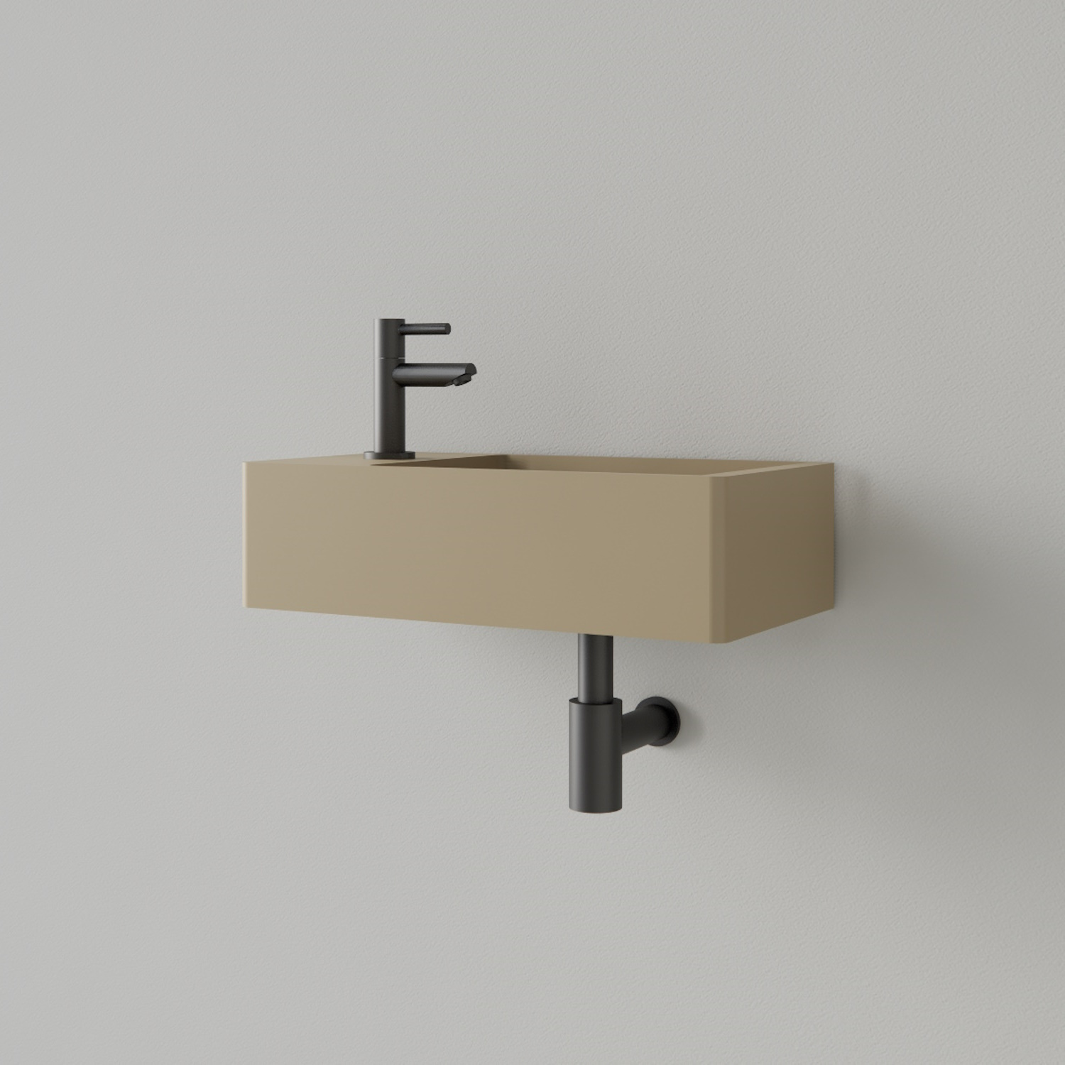Tevens wordt de fontein ook linksom gemonteerd aan de muur. De fontein wordt geleverd zonder kraan en sifon, deze dient u apart bij te bestellen.