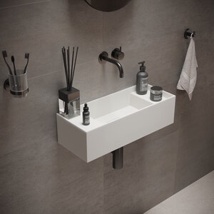 Solid Surface is uitstekend geschikt om sanitaire producten van te maken omdat het geen poriën en naden heeft. Solid Surface is een composiet, geproduceerd uit mineralen en harsen. Bovendien is dit materiaal bestendig tegen vocht, vlekken, en zelfs chemische stoffen. Er trekt dus niets in, is niet poreus en heeft een intense kleur en is gemakkelijk schoon te houden. Omdat het door en door van hetzelfde materiaal bestaat, kunnen eventuele beschadigingen weg gepolijst worden. Perfect om de hygiëne te behouden in uw design badkamer of toilet.