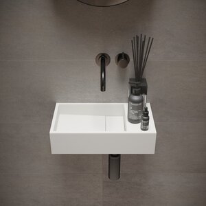 Deze fontein is geproduceerd in de kleur mat wit en heeft een rechthoekige vorm. De hoogte van deze waskom bedraagt 10 cm, de diepte 22 cm en de breedte 40 cm. Het matte, fluweelachtige oppervlak van het toilet fontein voelt prettig aan en is makkelijk schoon te maken en te onderhouden. Het artikel wordt geleverd met een bevestigingsset. Het water wordt afgevoerd door een smalle goot op de bodem van de fontein.