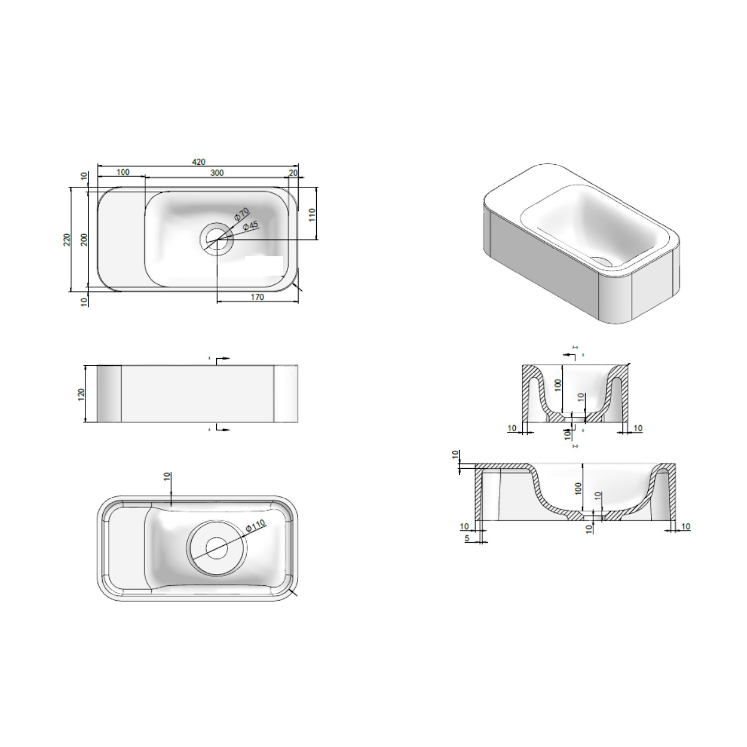 Het fontein bevat geen kraangat, deze dient u zelf te doorboren. U kunt de fontein zowel links als rechts plaatsen.