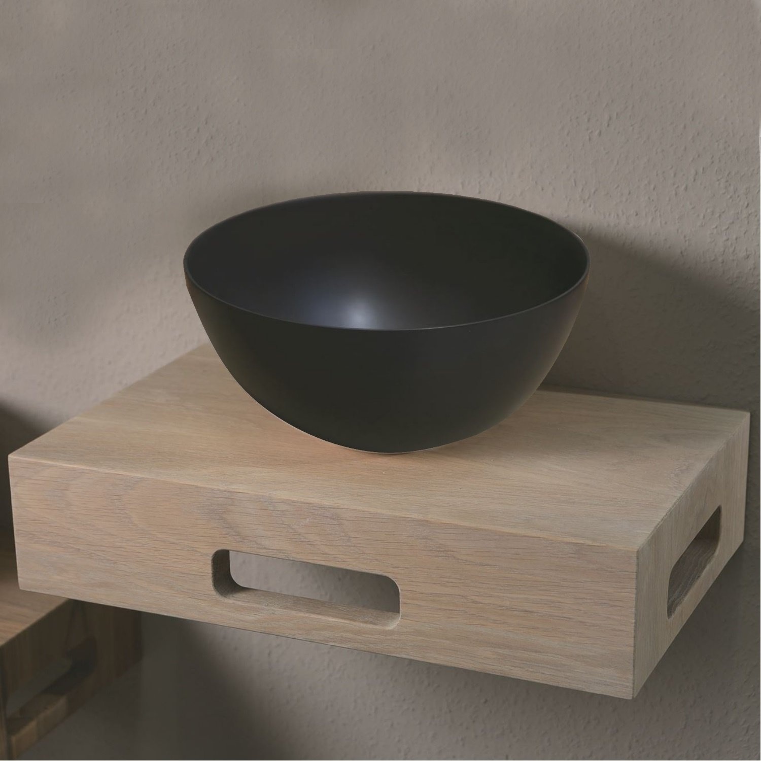 Een mooie opzet fontein voor in uw toiletruimte! U kunt de fontein met verschillende onderkasten combineren om zo de gewenste samenstelling te krijgen. De fontein is mat antraciet omdat de kom gemaakt is van Solid Surface.